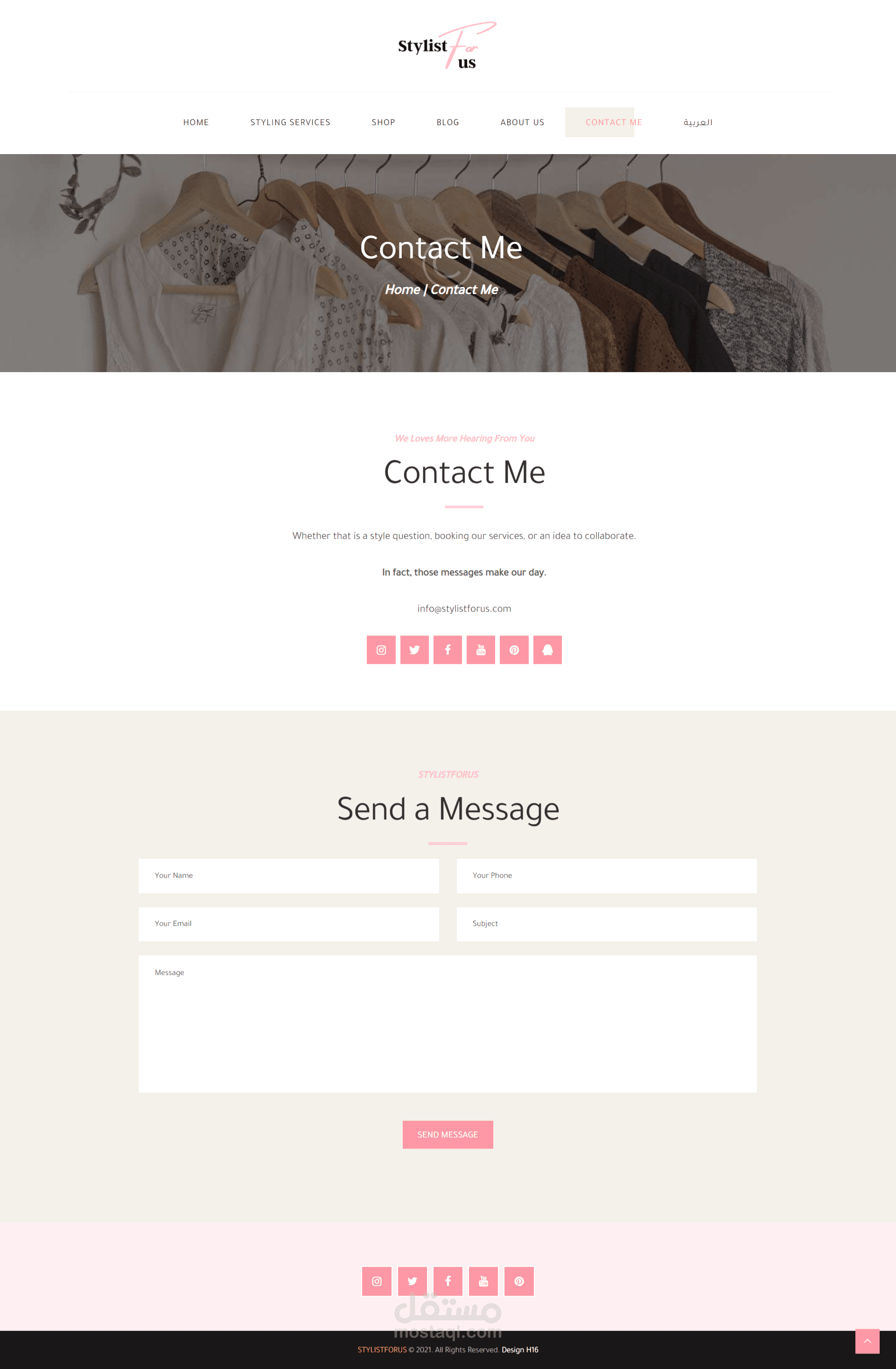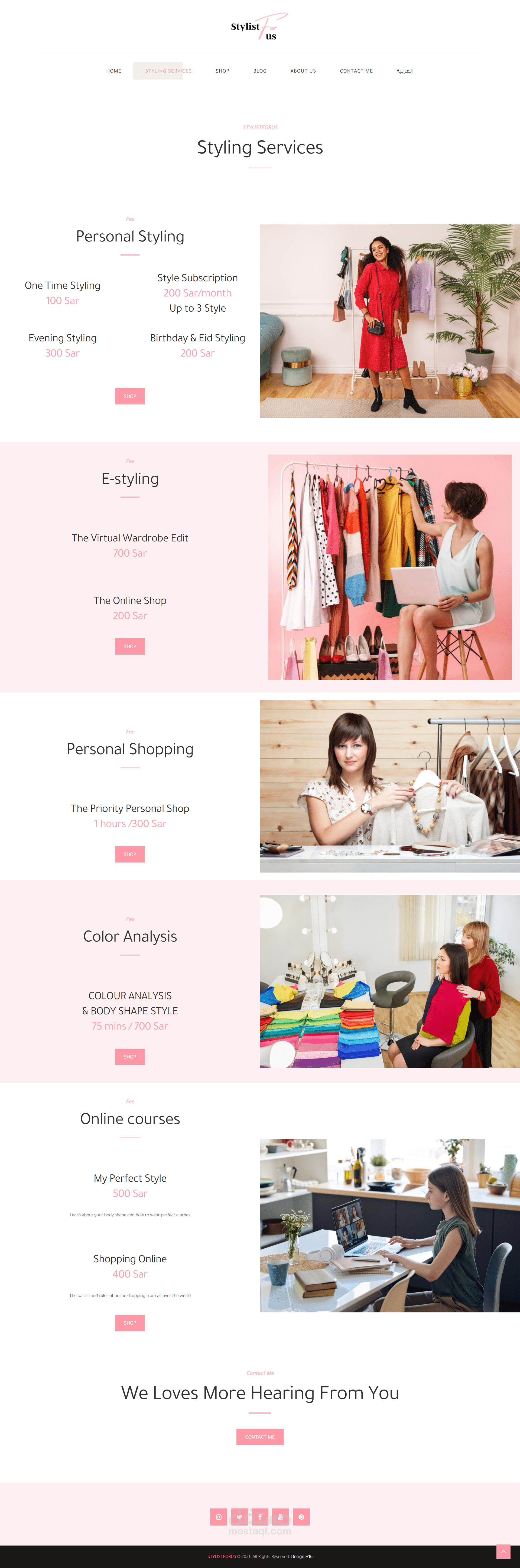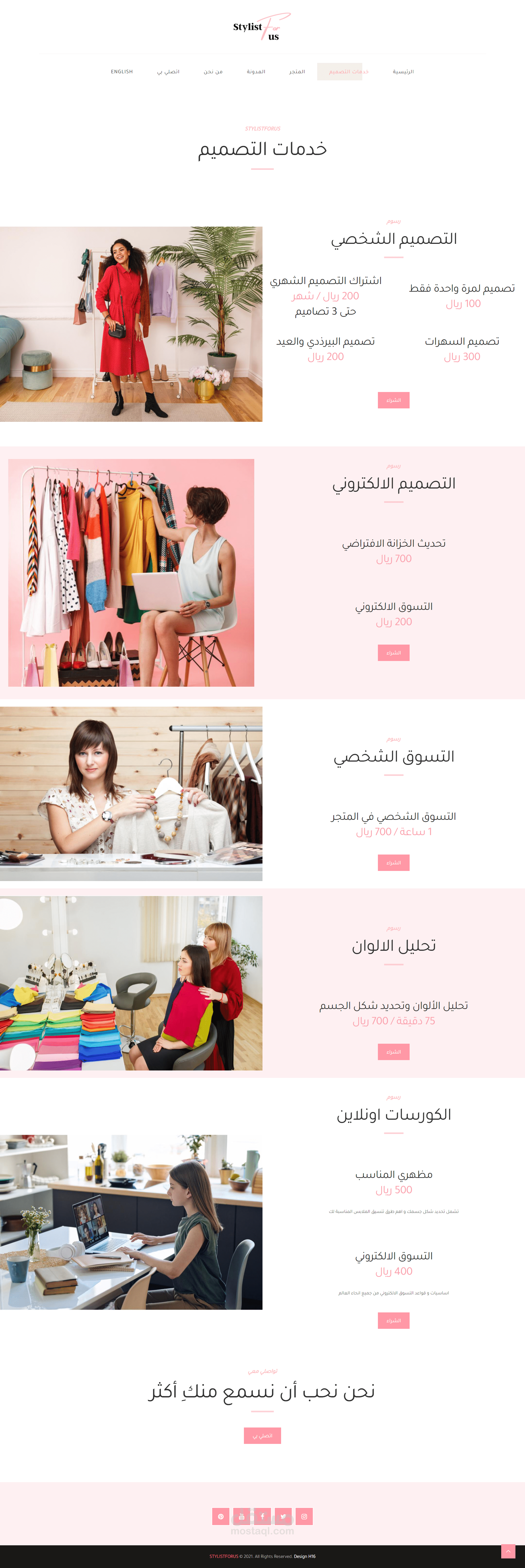 موقع ستايل فور يو لمنسقة ومصممة ومستشارة ازياء سعودية مبدعة .... موقع تعريفي + عرض وتسويق الخدمات (خدمات التنسيق والاستشارة) والمنتجات (الازياءء المصممة عالمياً وخليجياً) ... يتميز الموقع بتعدد اللغات العربية والانجليزية، والتصميم بشكل رائع وبالوان هادئة وانيقة وسرعة ممتازة، الموقع يدعم طرق دفع اونلاين بشكل سهل وسلسل (تحويل بنكي + بايبال + دفع عند الاستلام + التحويل البنكي.