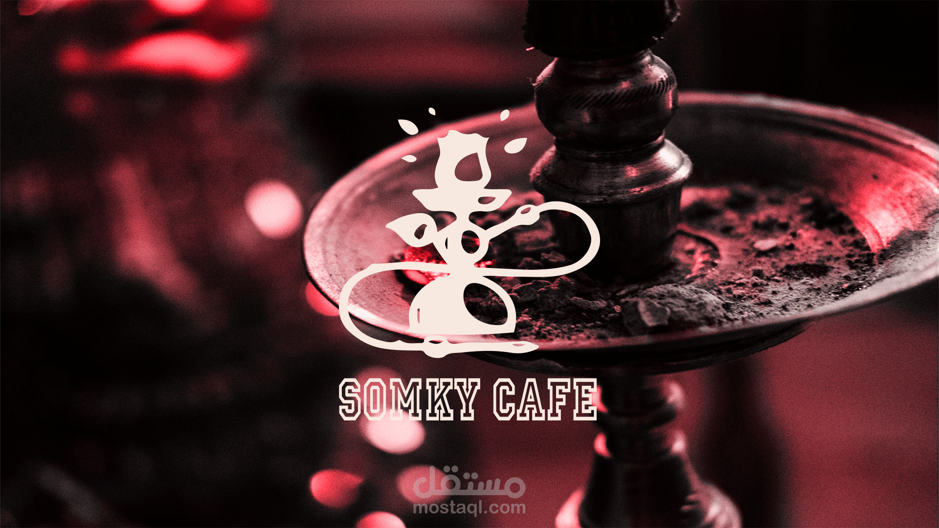 كافية وحي التصميم جاء من الشيشة واختاري الألوان الأحمر بس لون اللهب النابع من لهب الشيشة والمشروبات الساخنة المقدمة