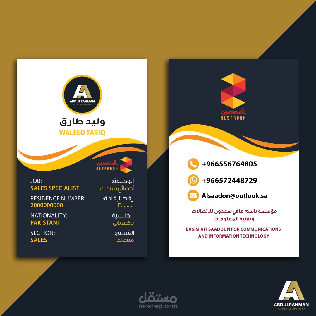 بطاقات تعريفية للعاملين بمقاس 5.5cm * 8.5cm