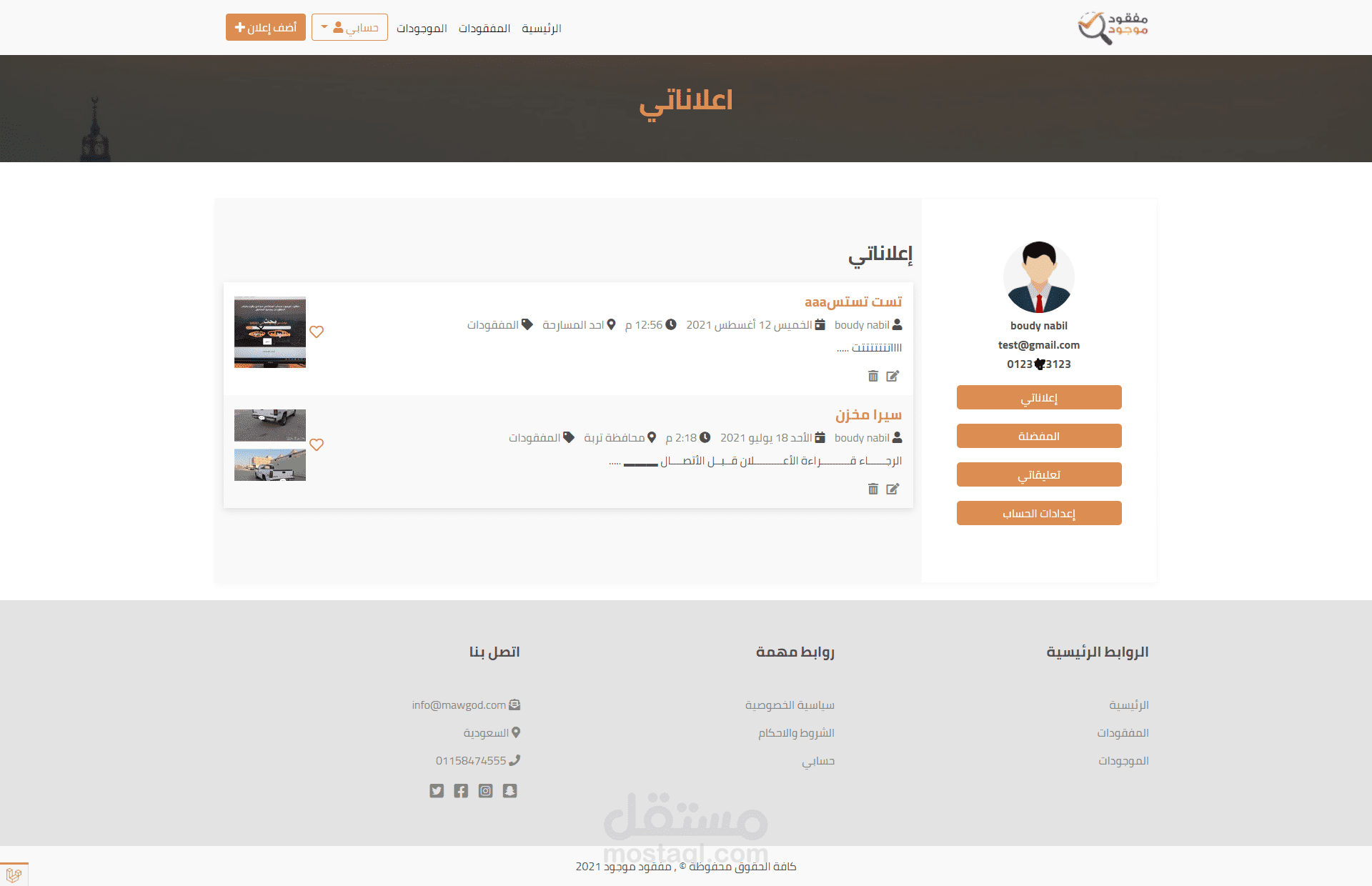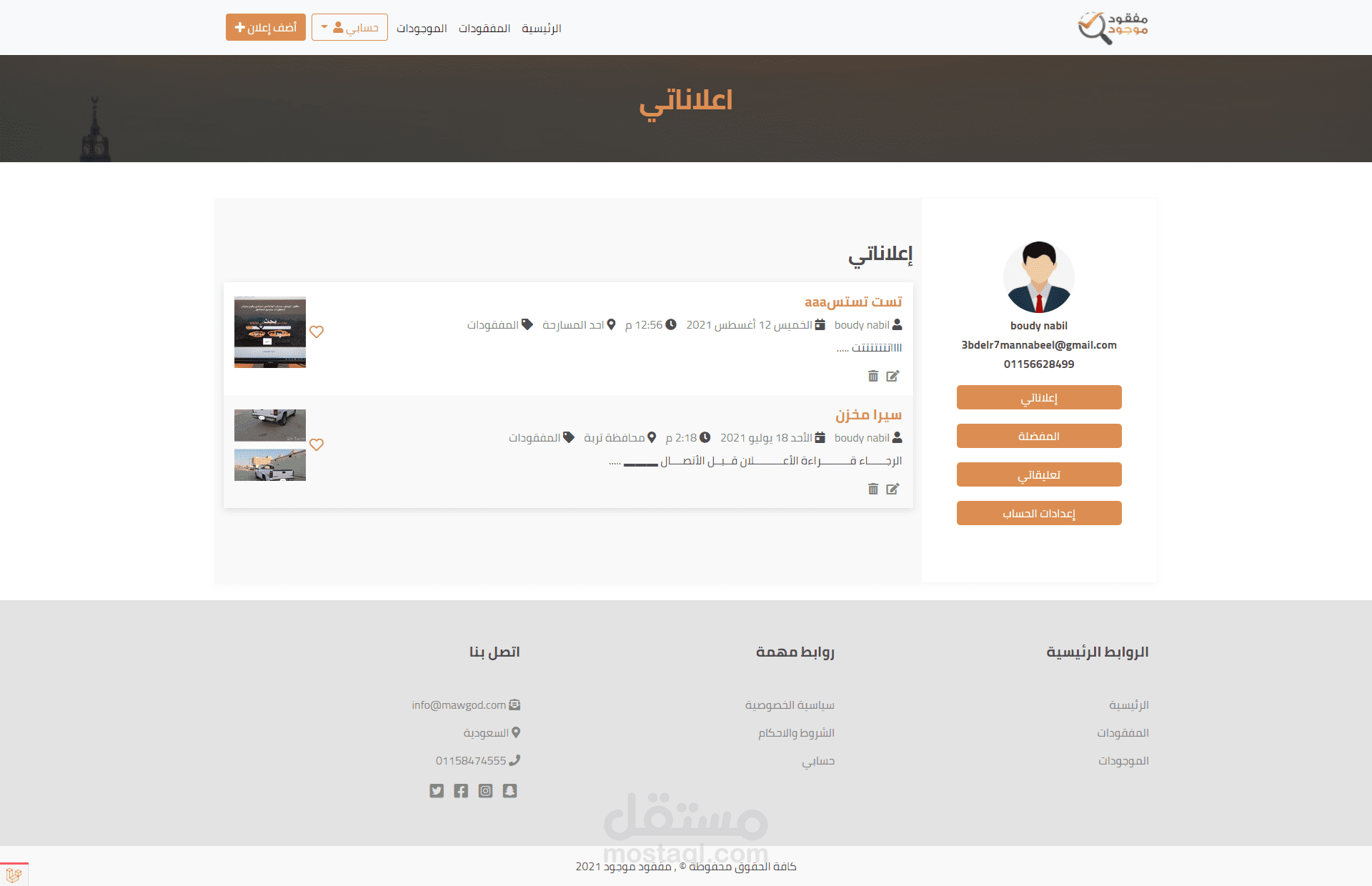 في حالة فقدانك لشيء يمكنك كتابته داخل الموقع و المكان الذي فقدته فيه واذا وجده الشخص يمكنه مراسلتك
