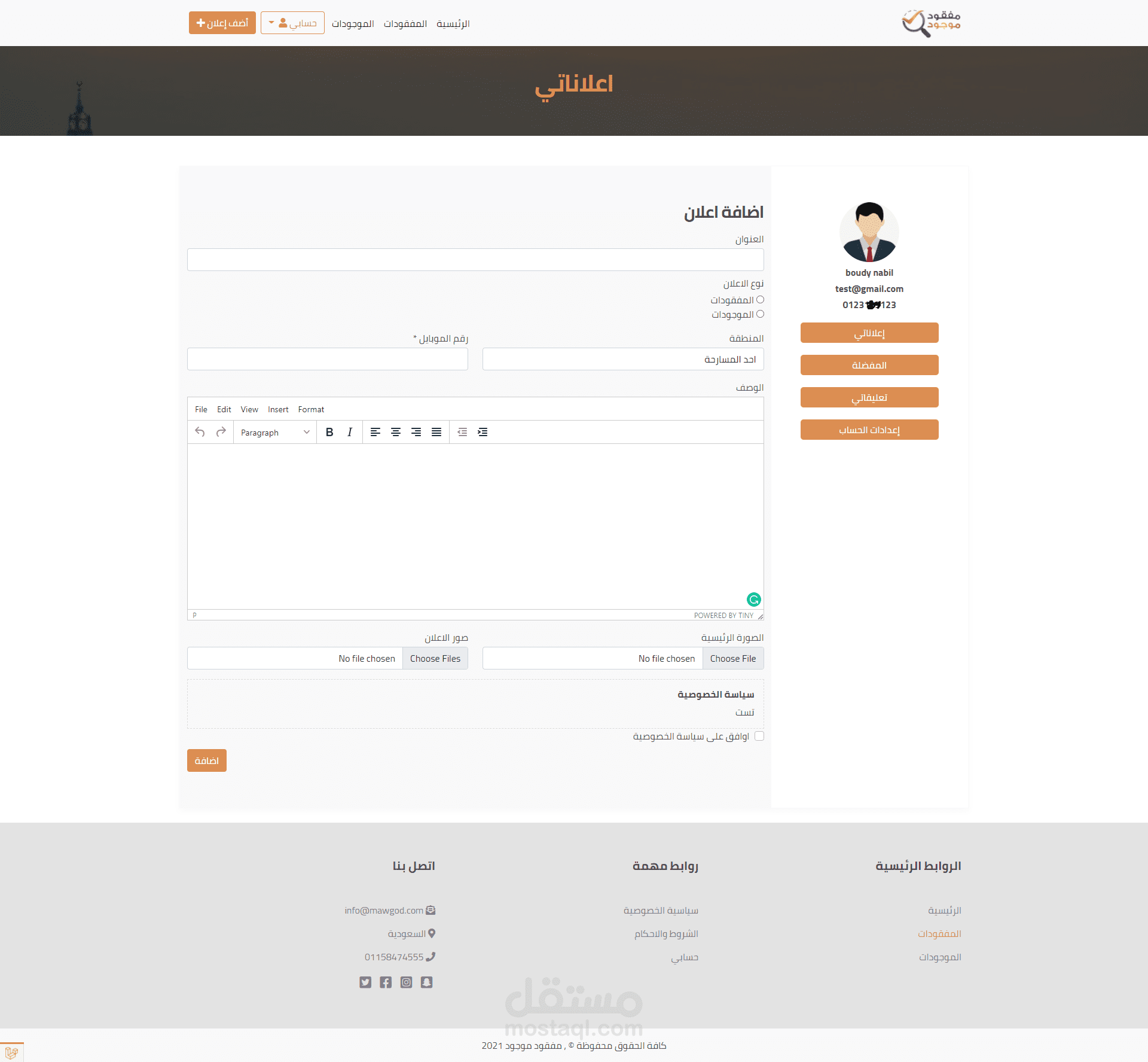 وفي حالة وجدت شيء يمكنك عرضه حتي يجده صاحبه ويستلمه منك