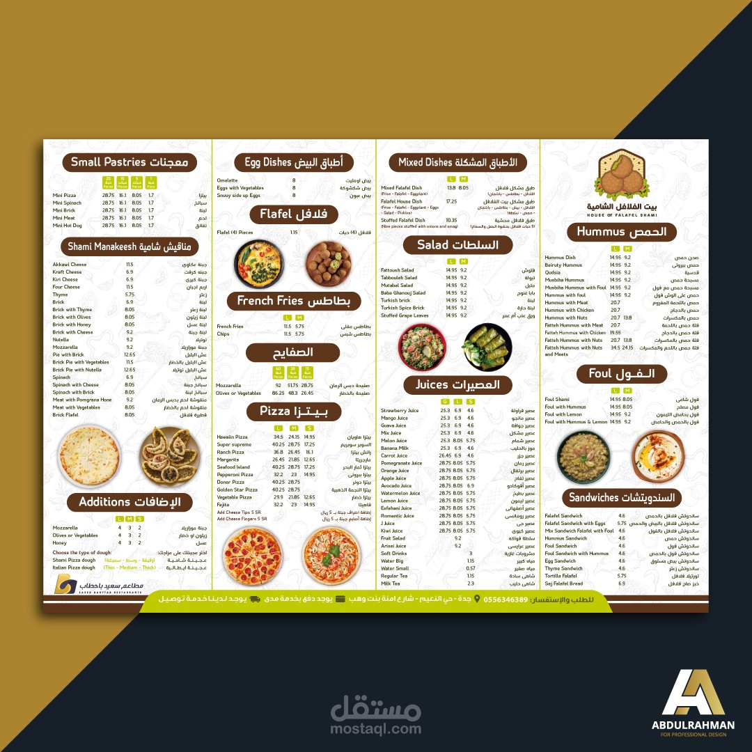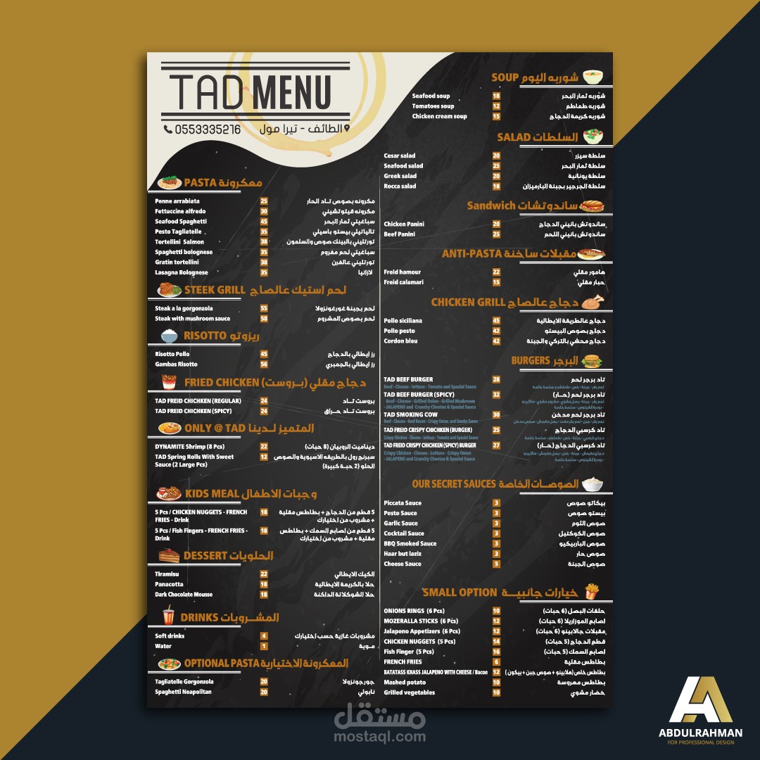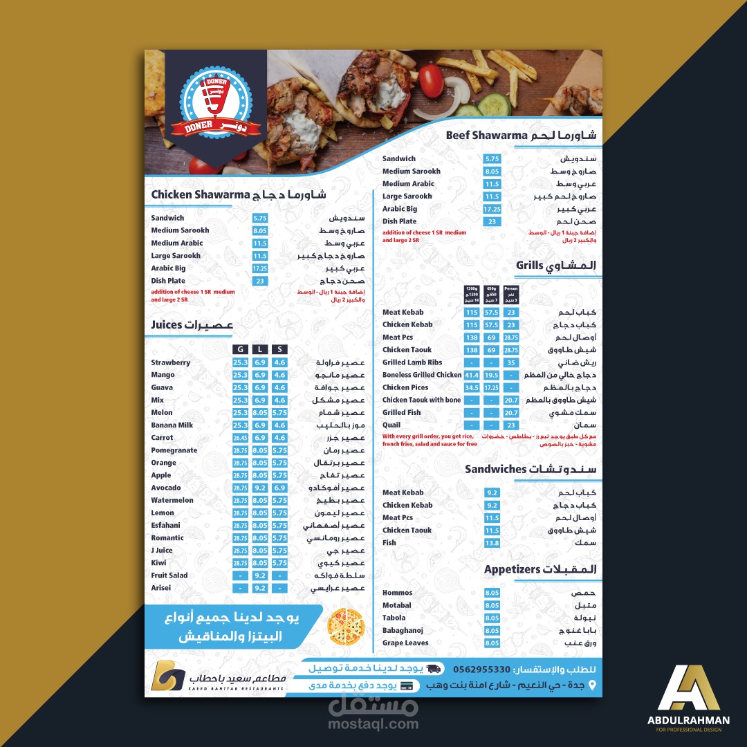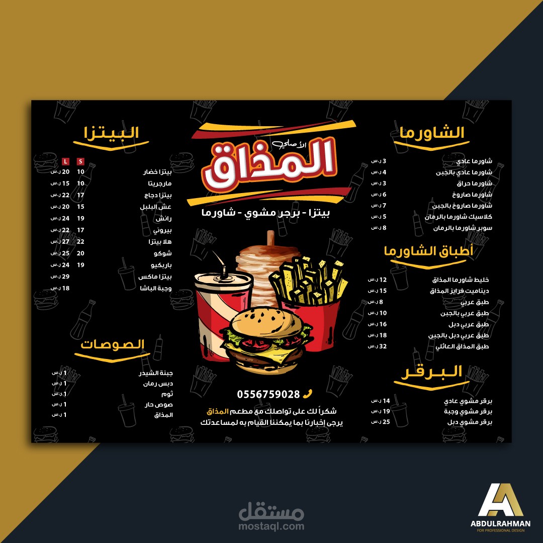 قائمة طعام لعدة مطاعم مختلفة