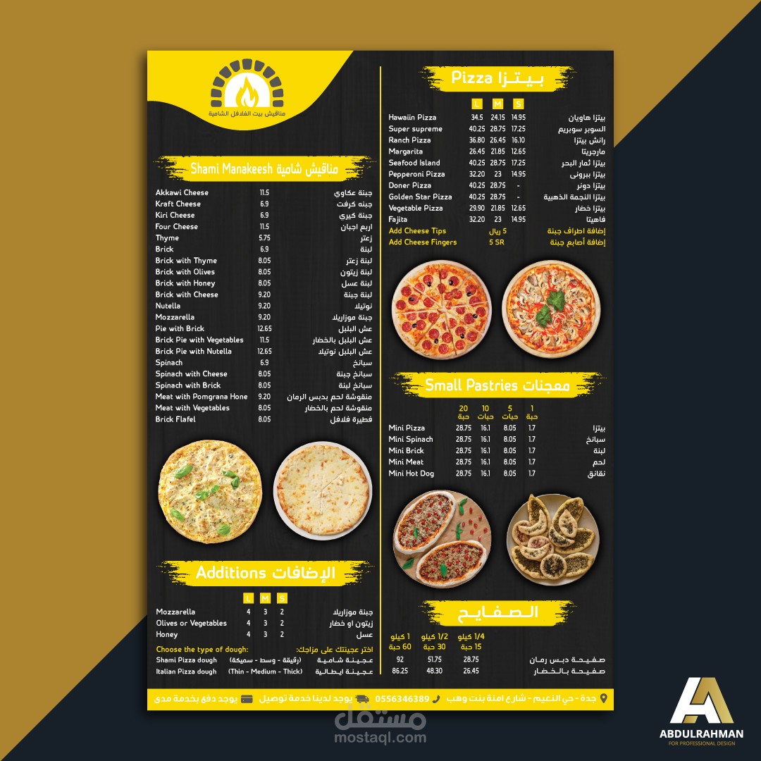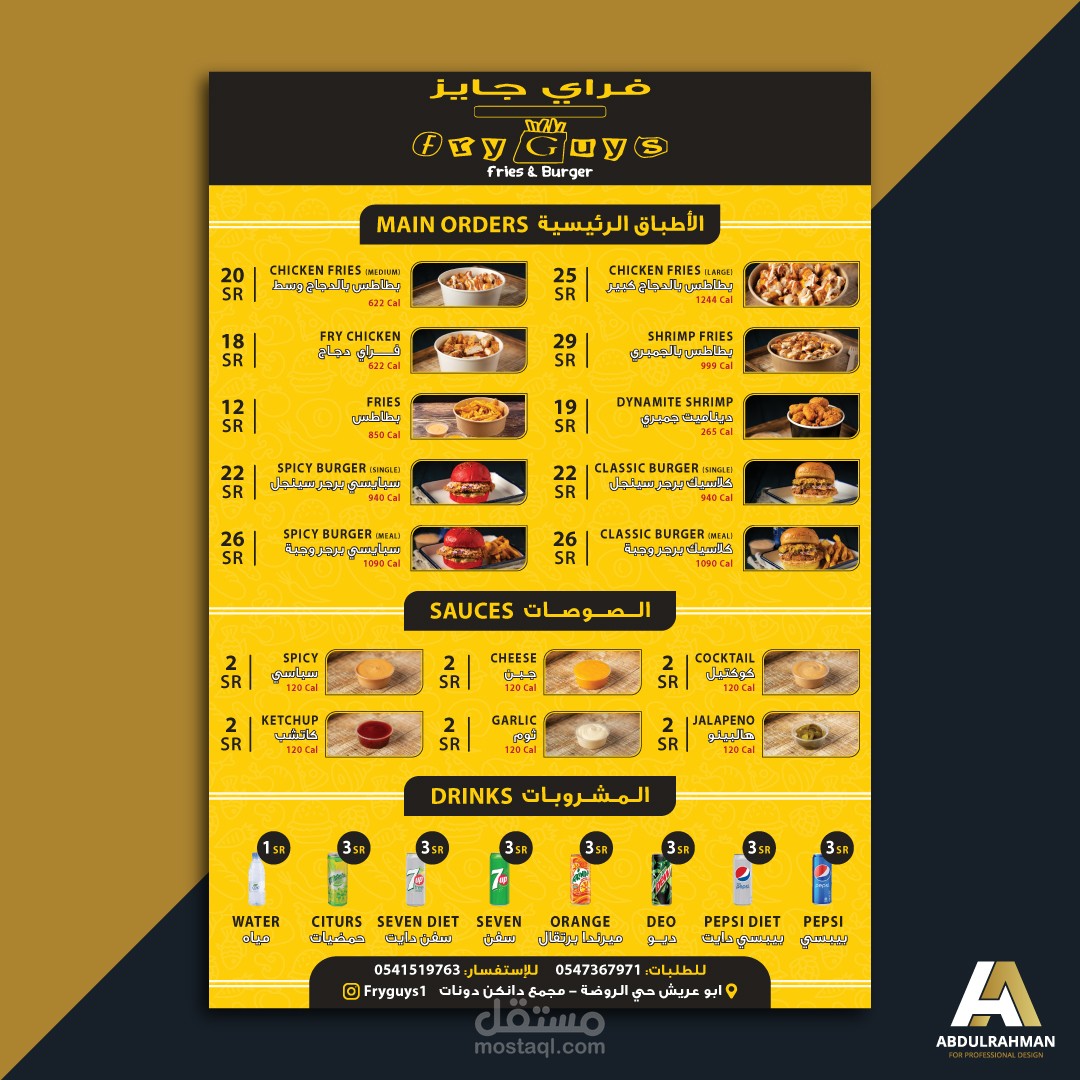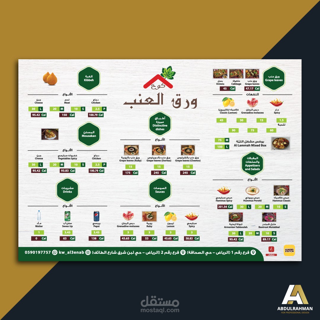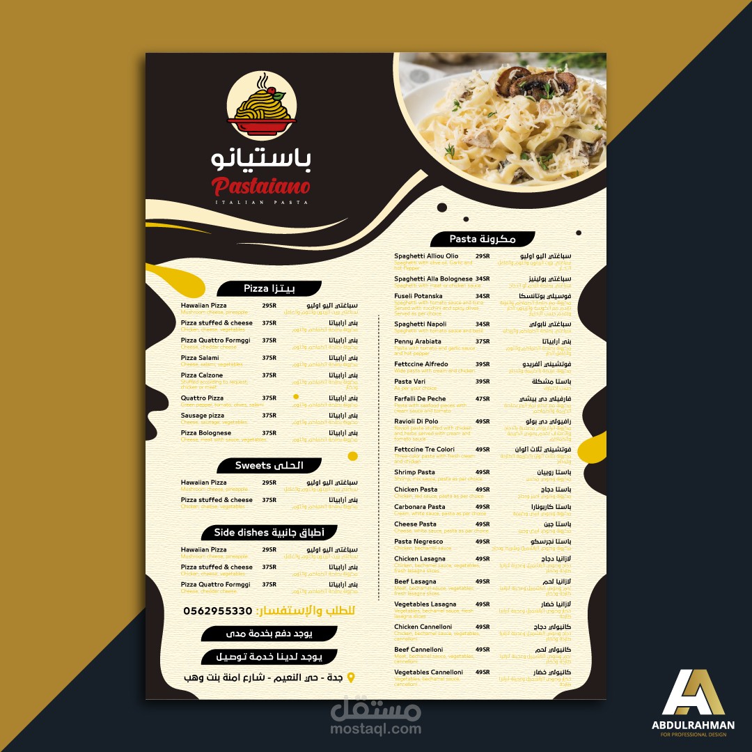 قائمة طعام لعدة مطاعم مختلفة