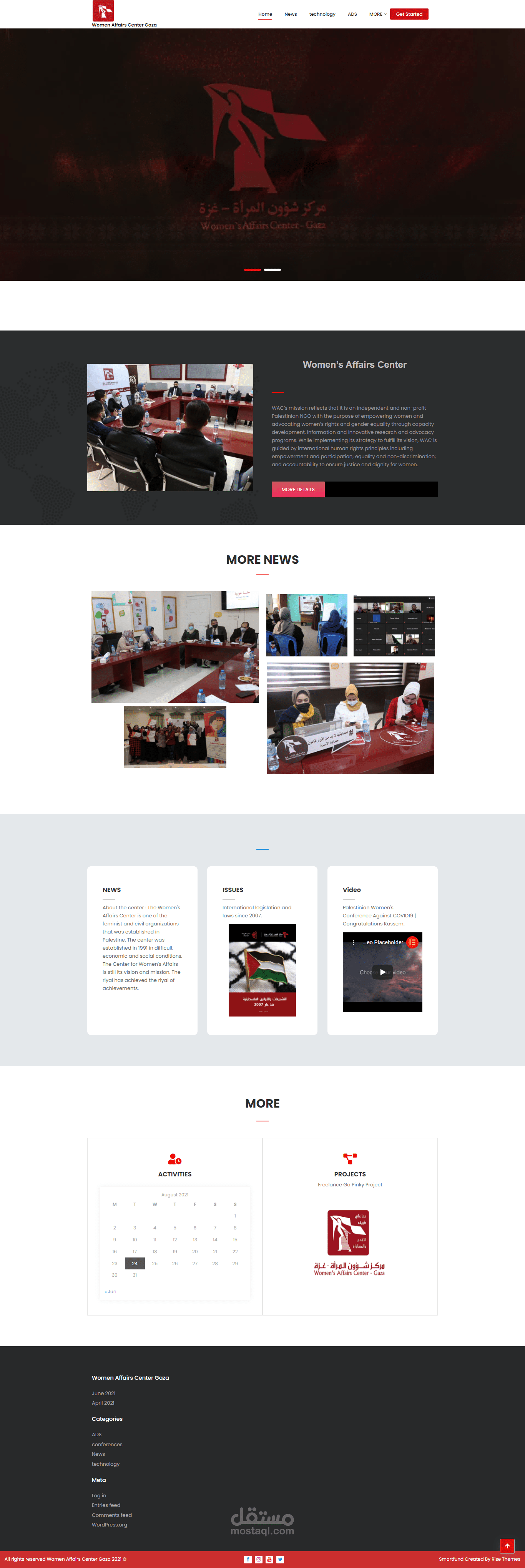إعادة تصميم الموقع الخاص بمركز شؤون المرأة باستخدام قالب جاهز من الوردبريس و اضافة تعديلات للصفحات من خلال الإيلمنتور .