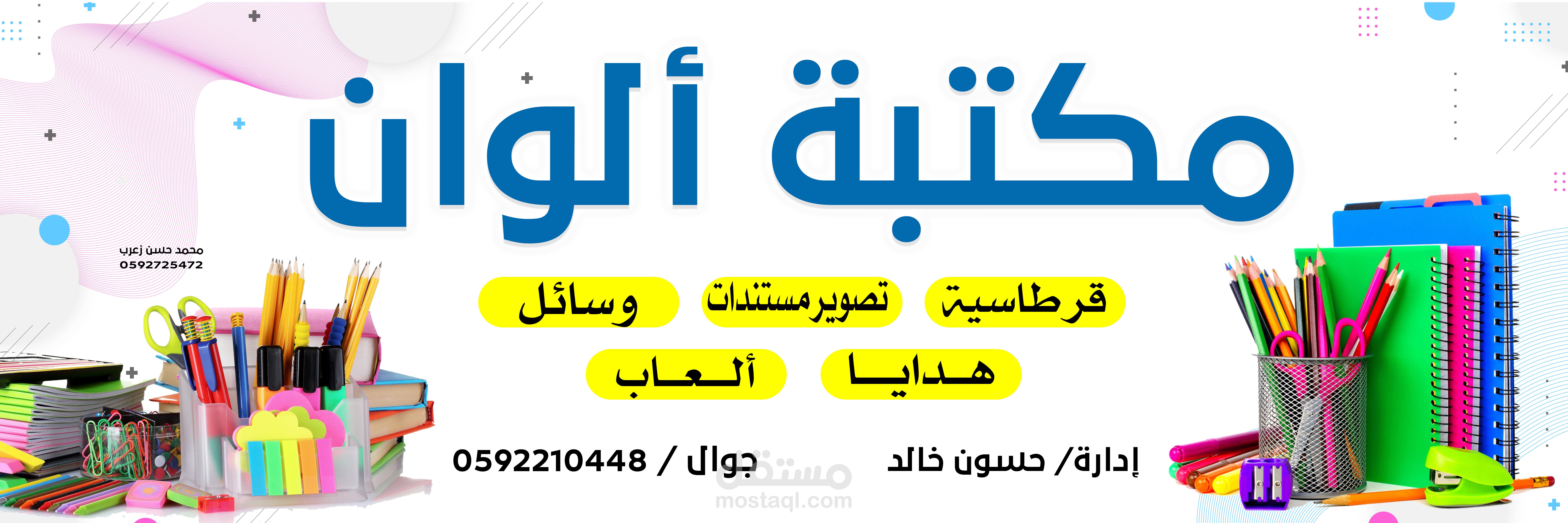 تصميم وطباعة يافطة لصالح مكتبة ألوان ، تم استخدام فيها برنامج الفوتوشوب واليستريتور