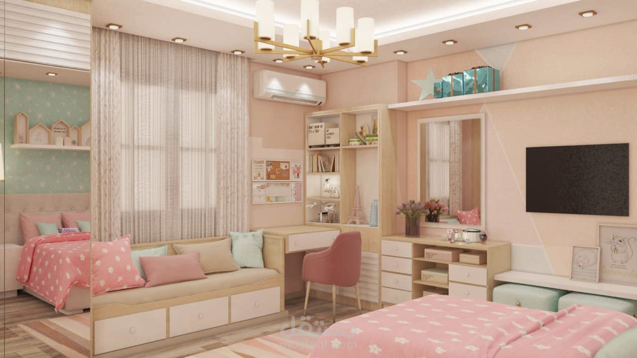 تصميم مميز لغرفة نوم بنت في سن الطفولة
