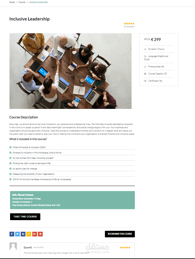 منصة إلكترونية متعددة اللغات (الإنجليزية , الهولندية )تقدم مجموعة من الدورات التعليمية فيما يخص سوق العمل وبيئة العمل ودعم النساء العاملات بما في ذلك إمكانية الالتحاق بالدورة اونلاين وتقديم رسوم الاشتراك إلكترونيا بالإضافة إلى المقالات العديدة الخاصة بسوق وبيئة العمل .