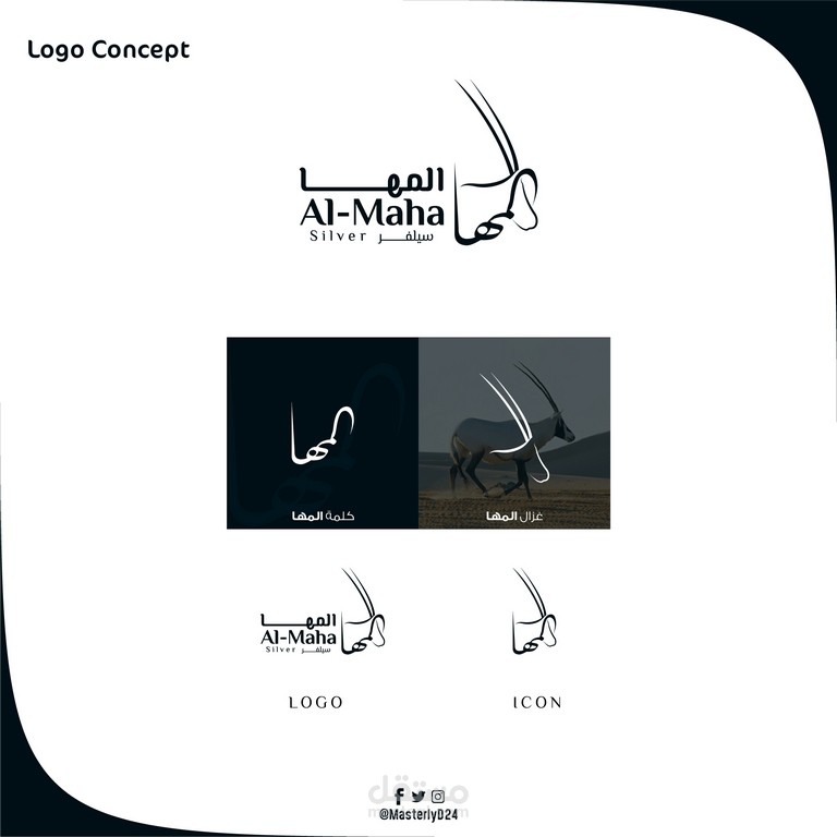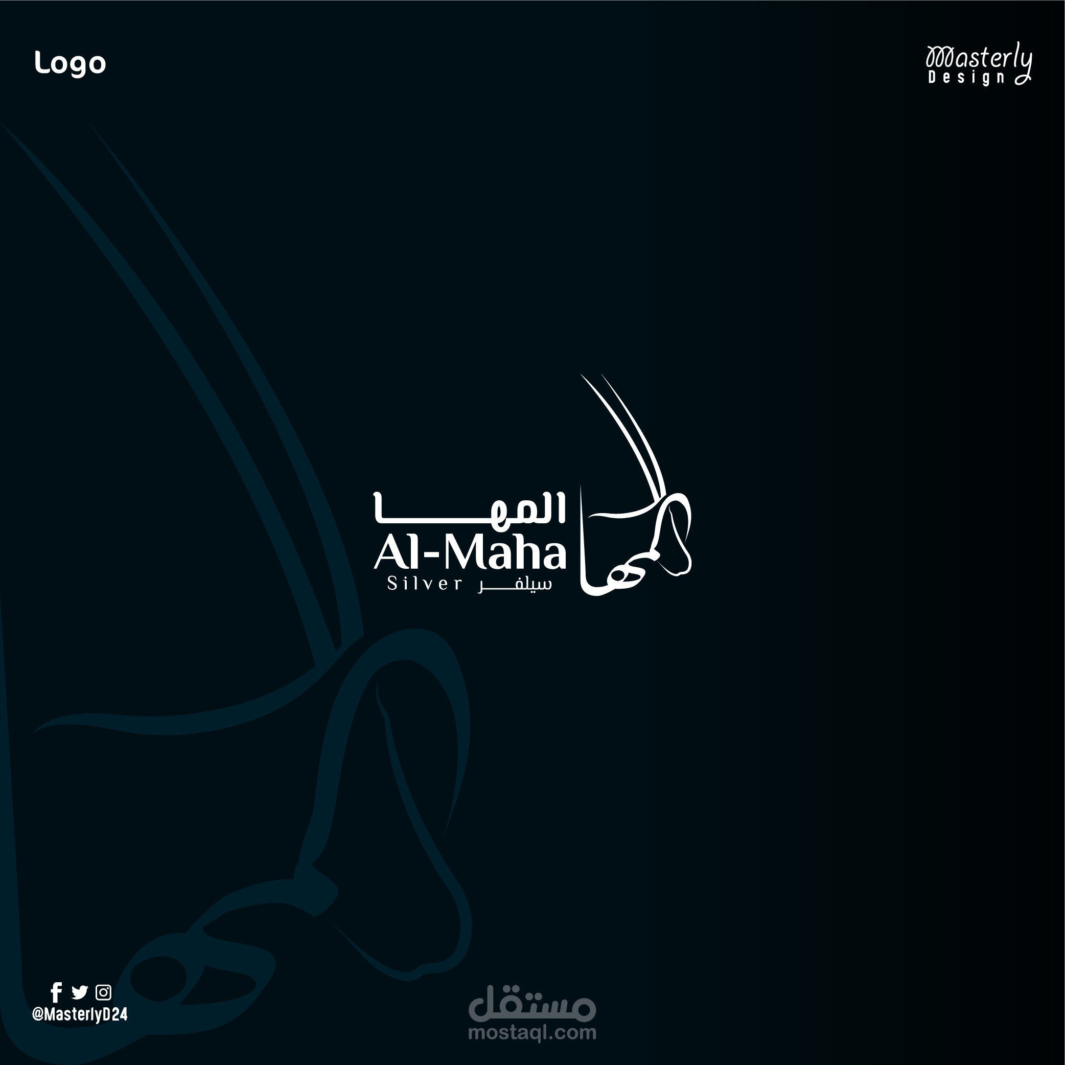 تصميم شعار لمحلات المها سيلفر المختصة بمجال الفضيات ، يعكس الشعار المسمى حيث يظهر الشكل العام لغزال المها كما تم استخدام اللون الفضي في المشروع