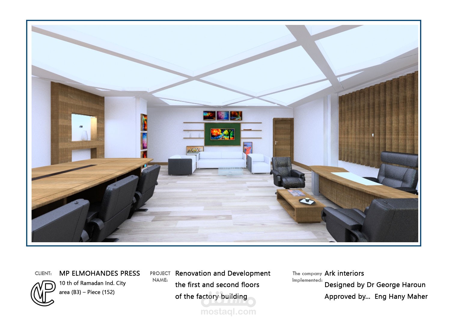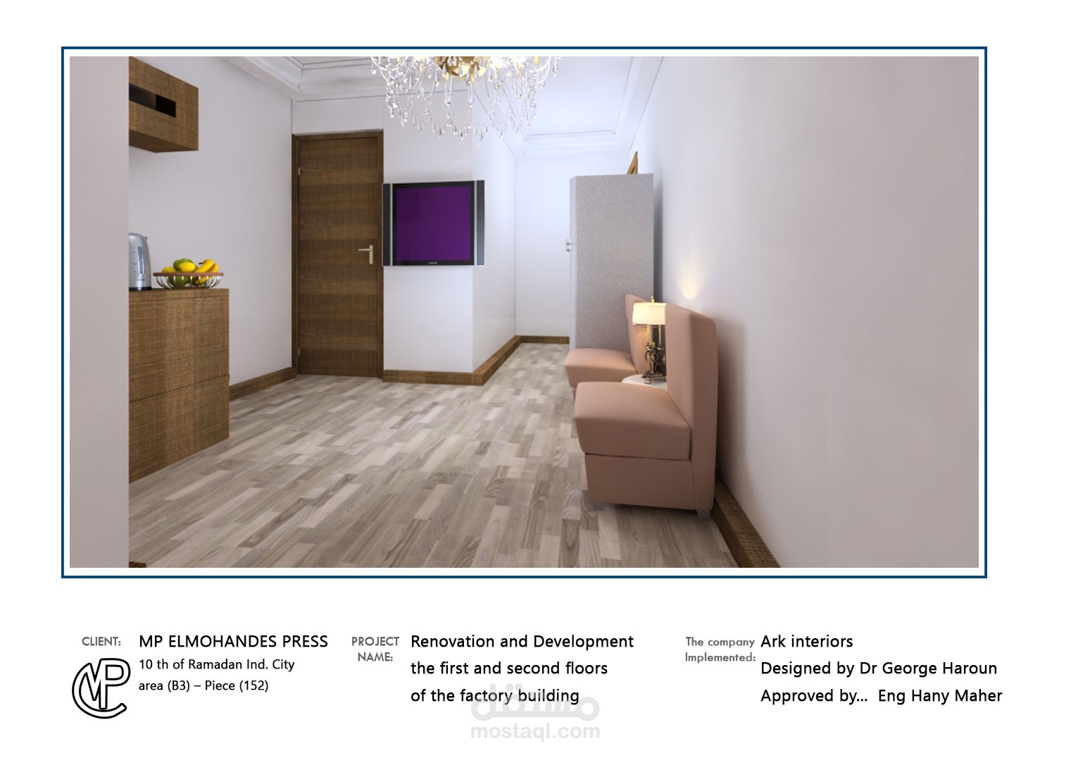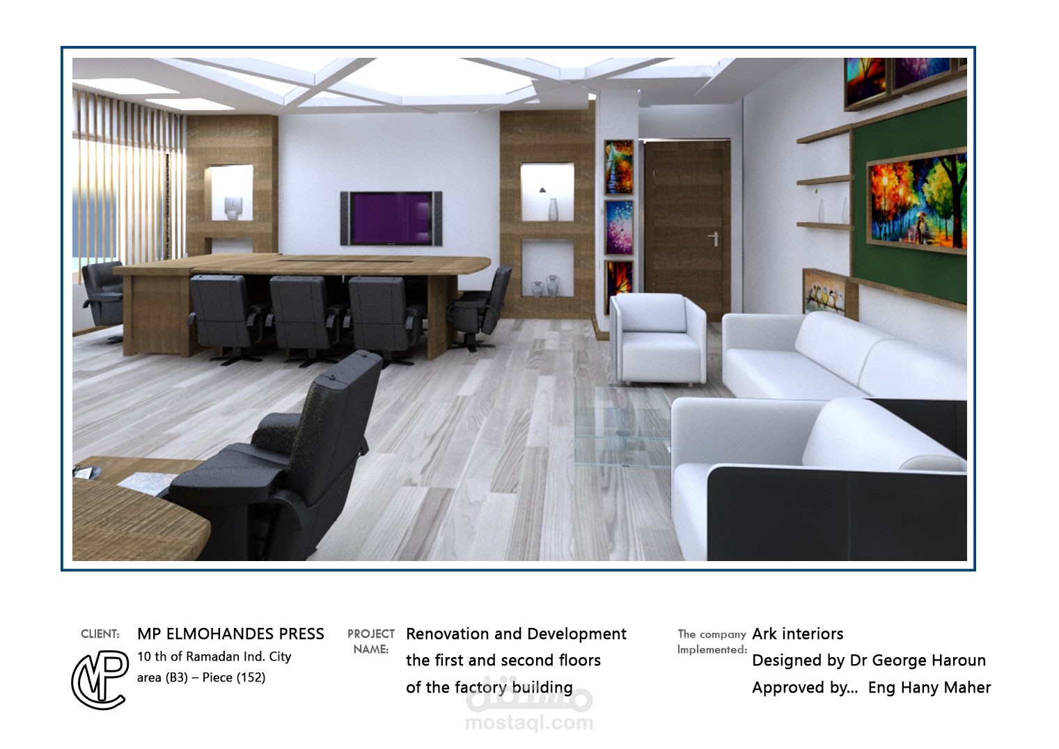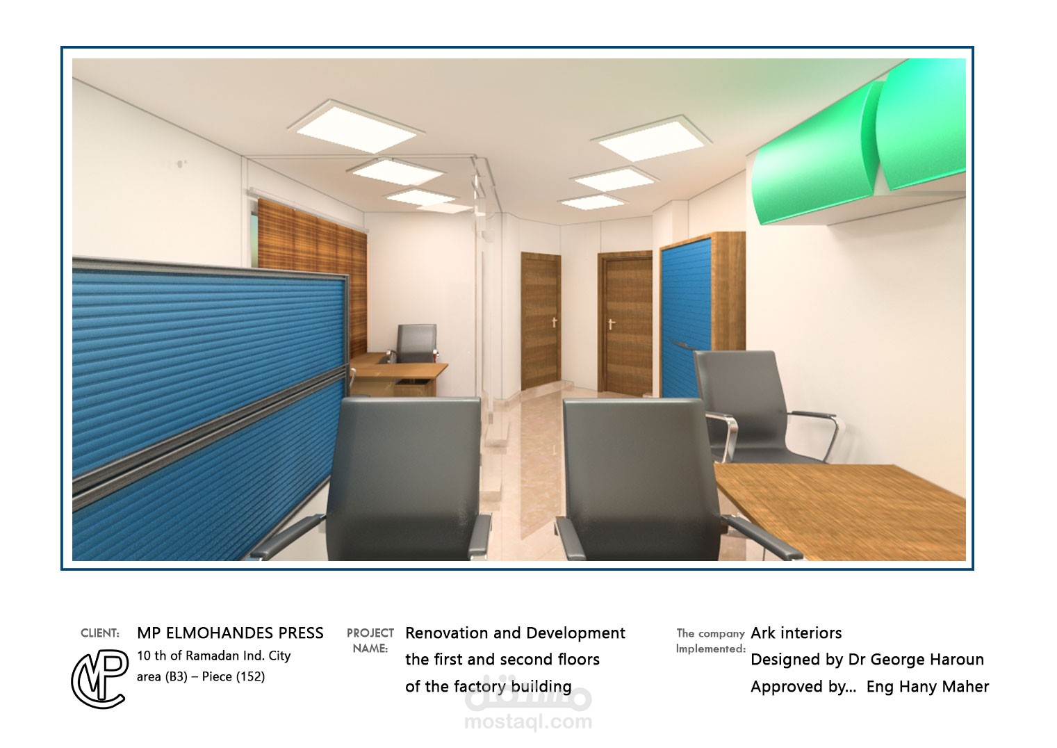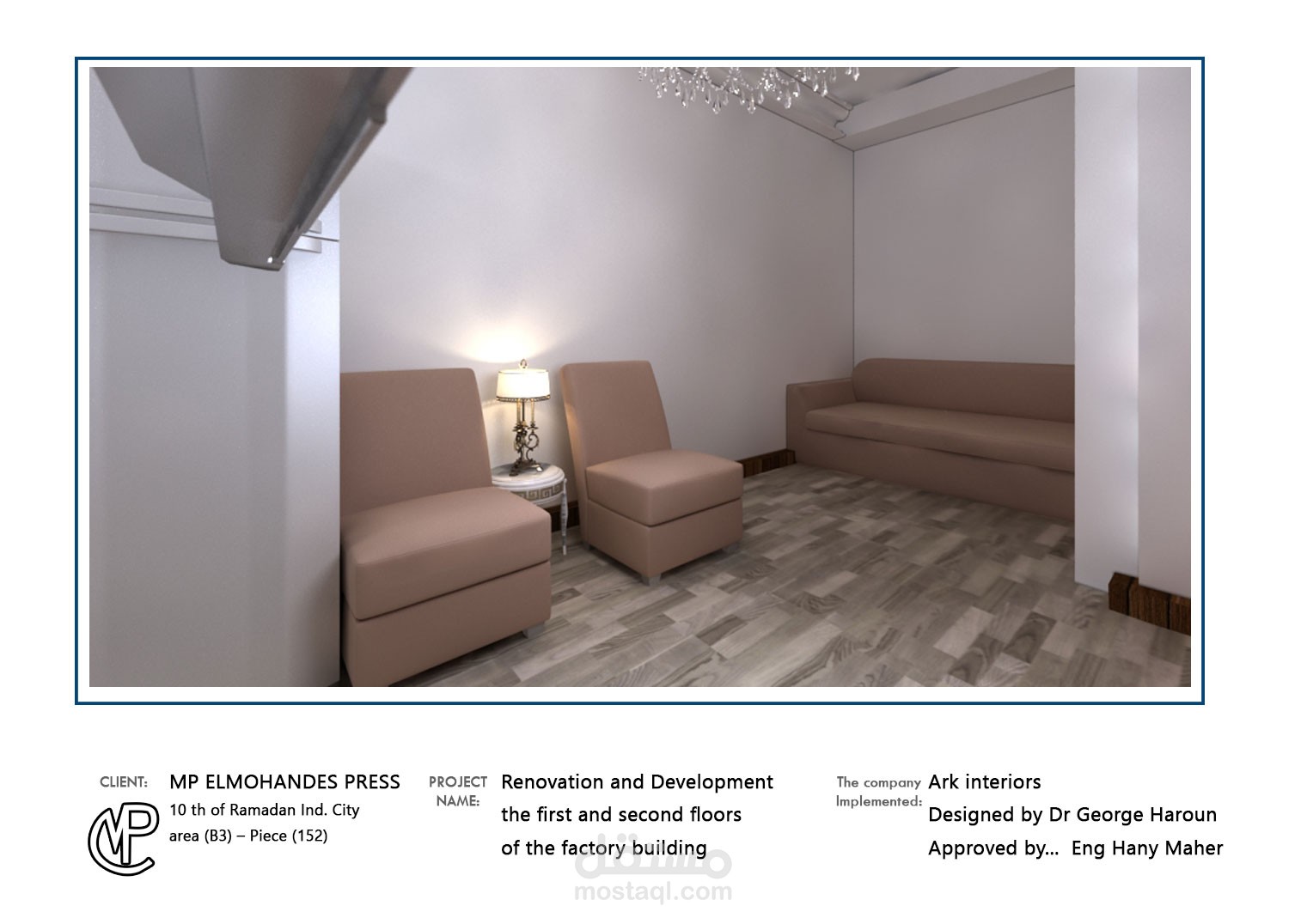 مصنع مكون من طابقين ريسبيشن استقبال ومكاتب متنوعة للمديرين والادراريين