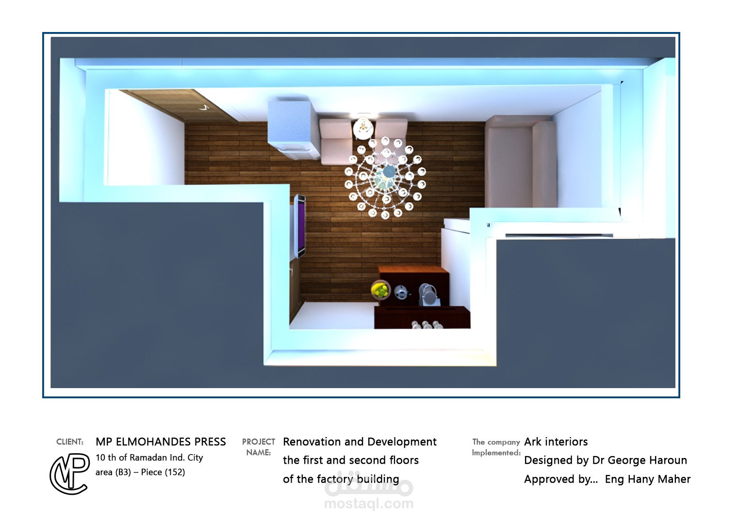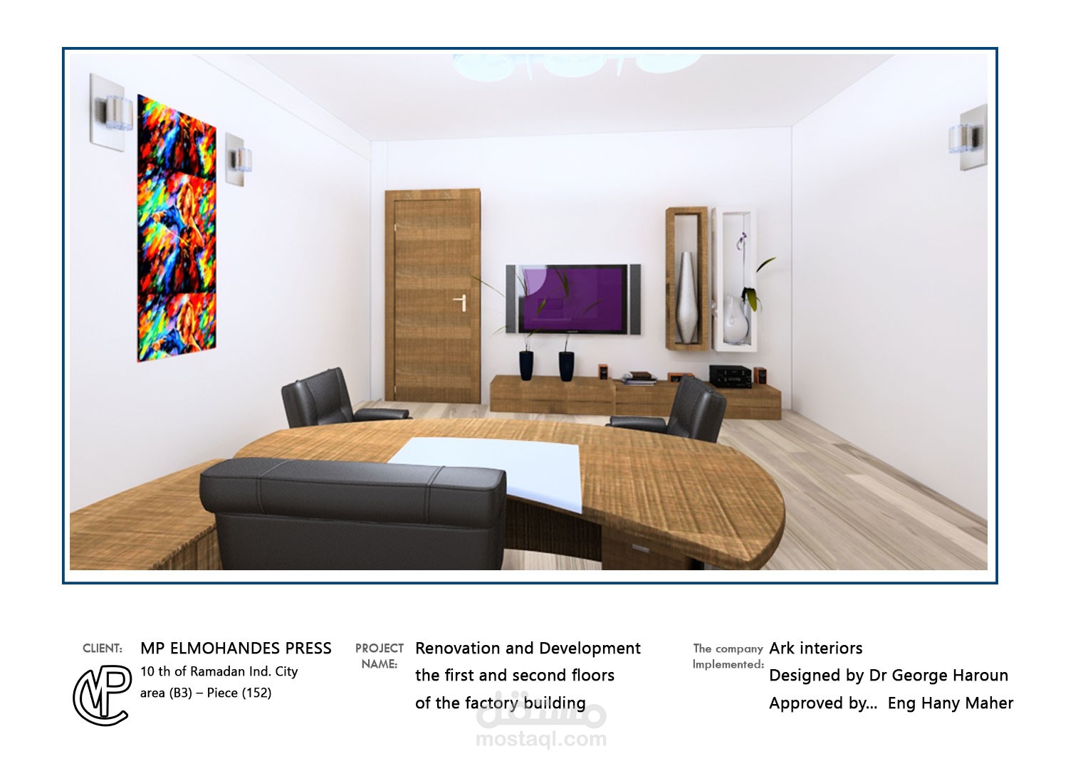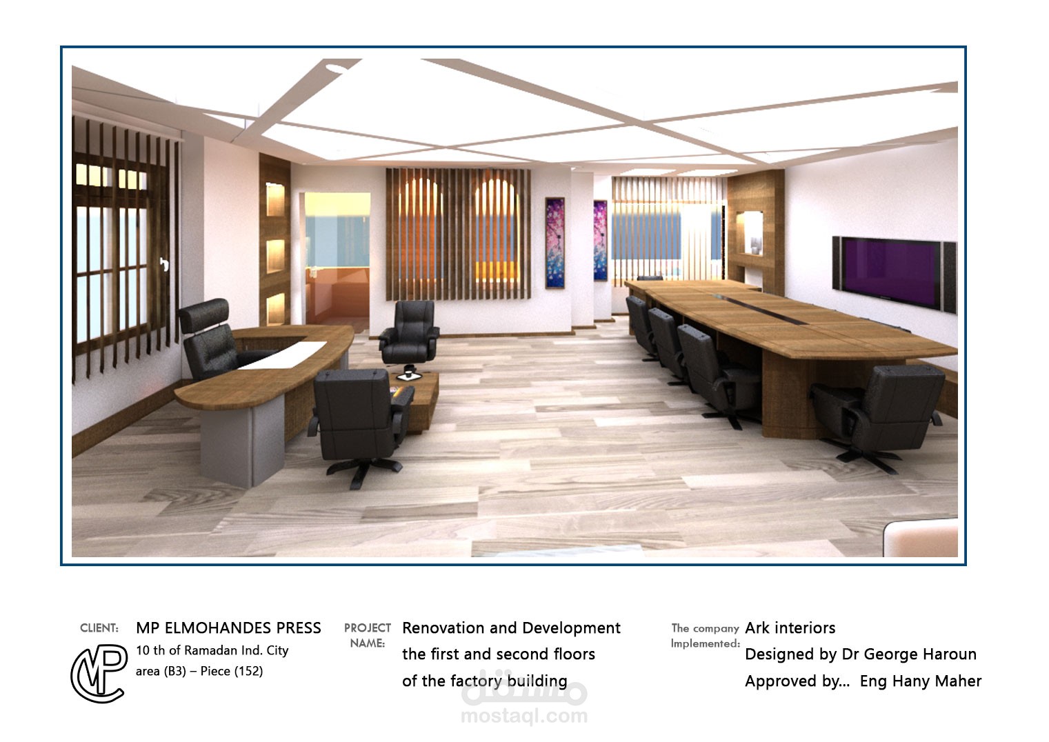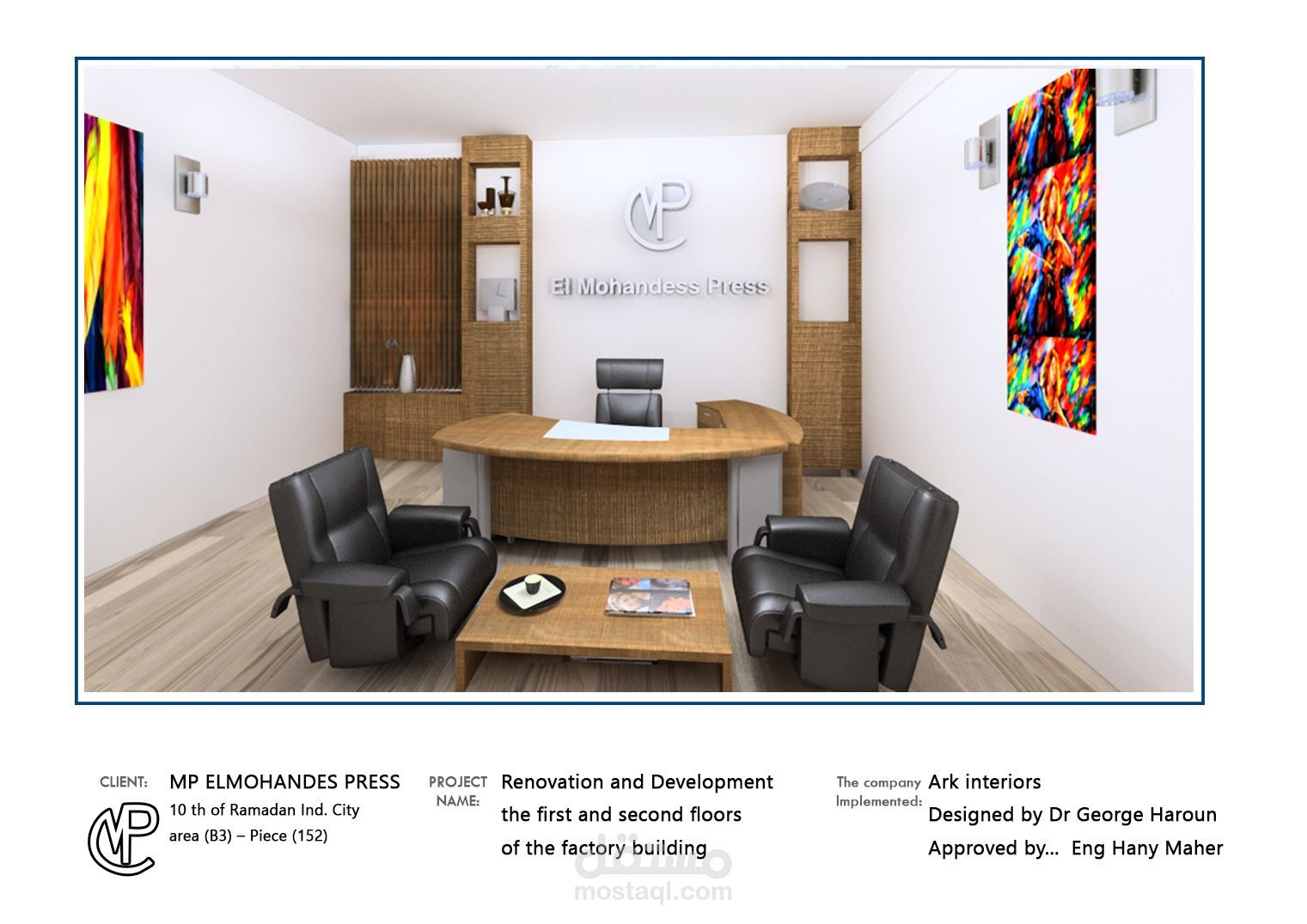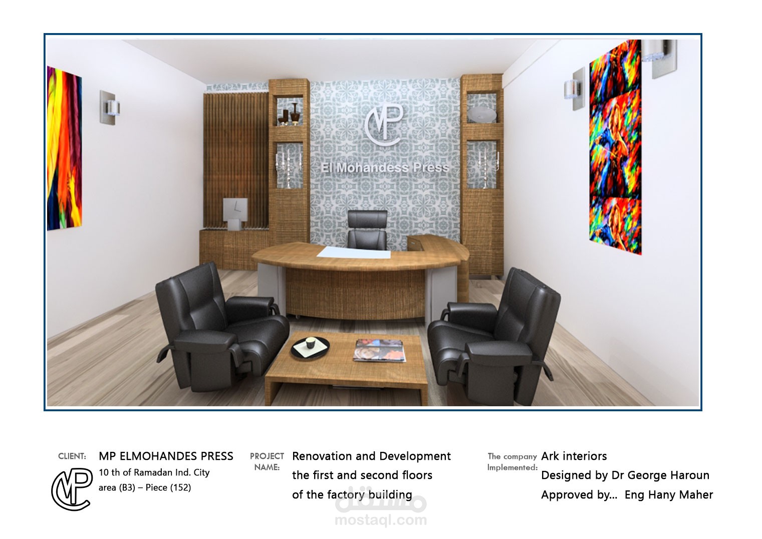 مصنع مكون من طابقين ريسبيشن استقبال ومكاتب متنوعة للمديرين والادراريين