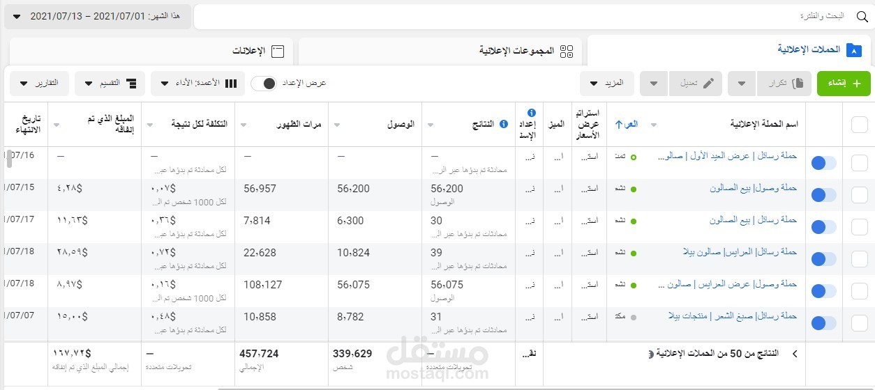 هذا نموذج لبعض الحملات الإعلانية التي قمت بتنفيذها على منصة فيسبوك، والتي جلبت نتائج مذهلة لعملائي.