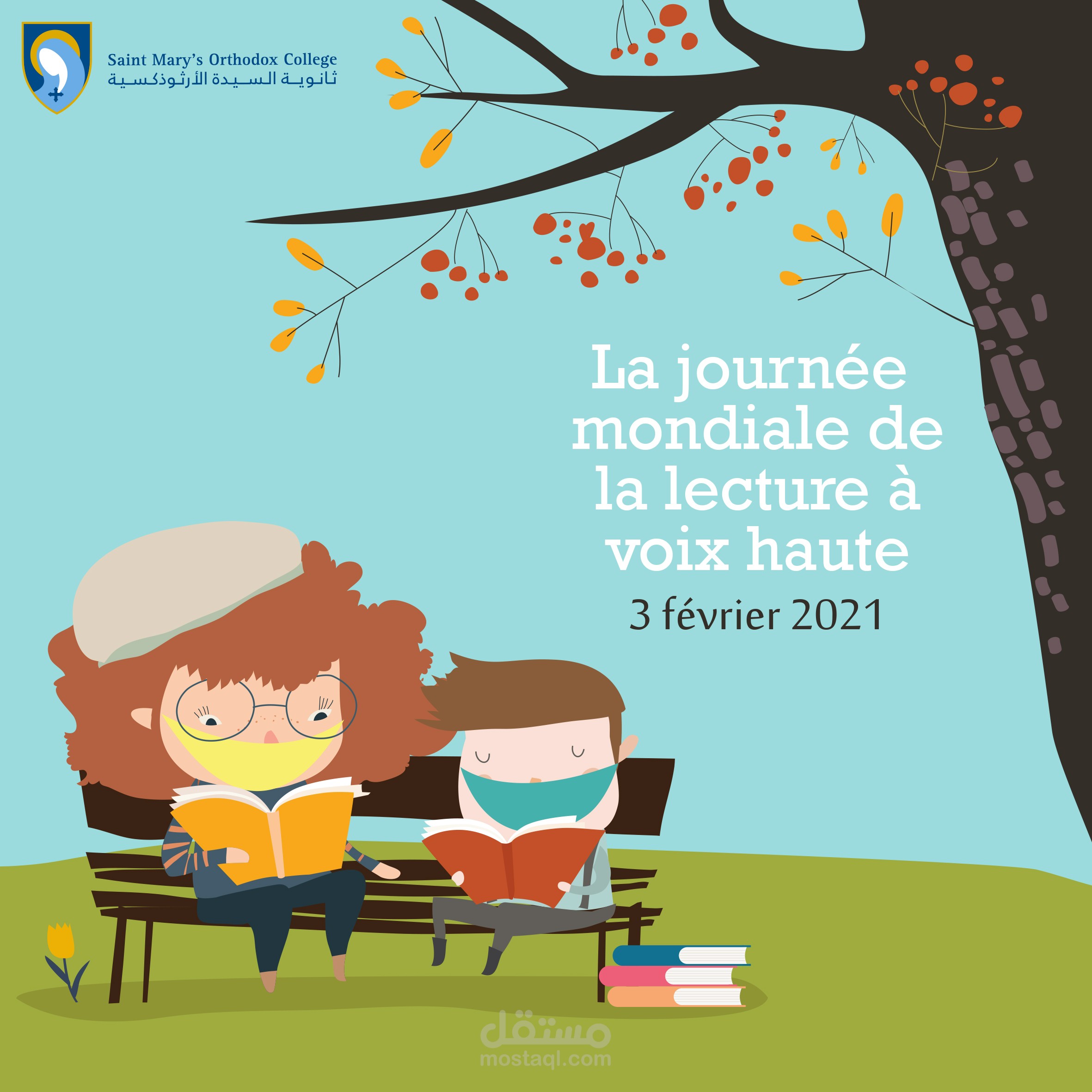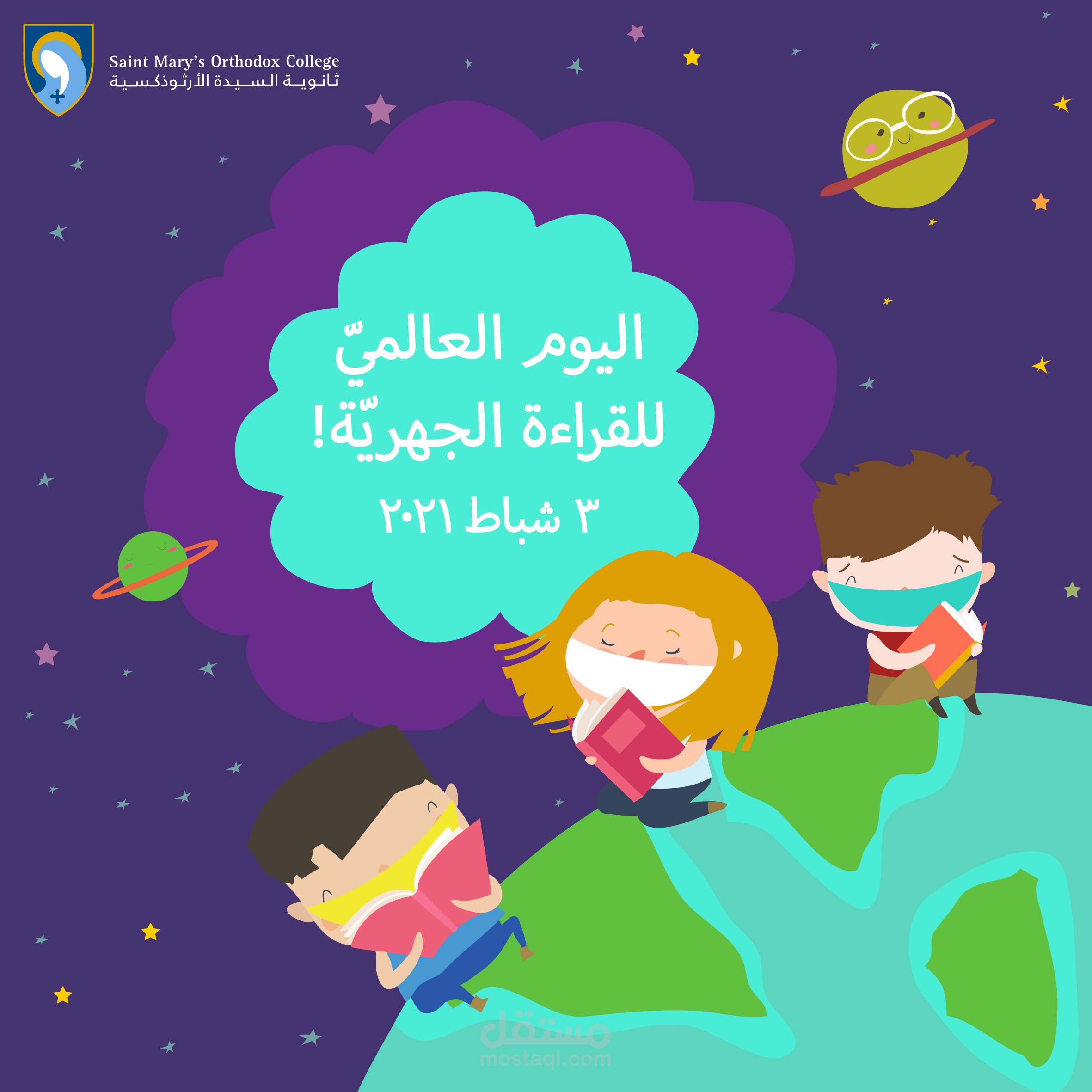 يوم القراءة العالمي ملصقات بوست لوسائل التواصل الاجتماعي بلغات مختلفة