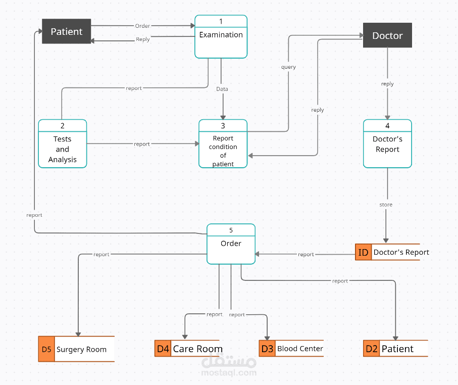 data flow diagram for a doctor's clinic or hospital management system