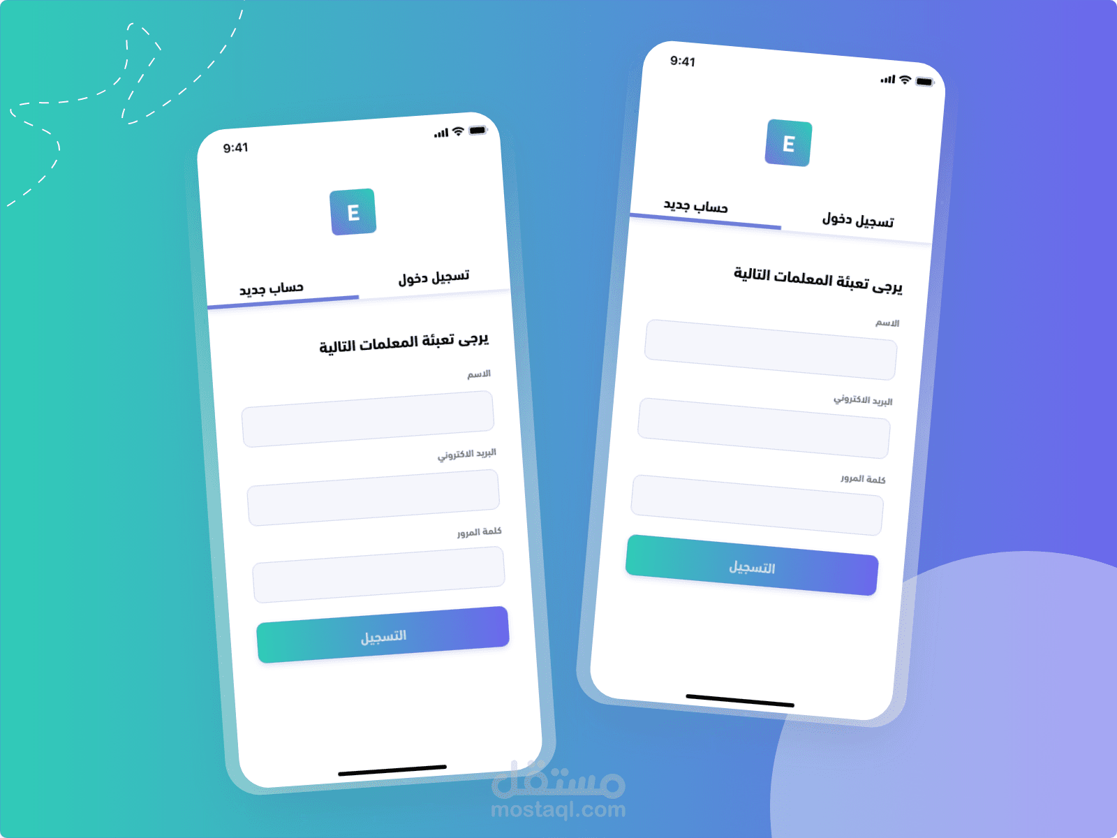 هذه هي شاشات تسجيل الدخول و إنشاء حساب.