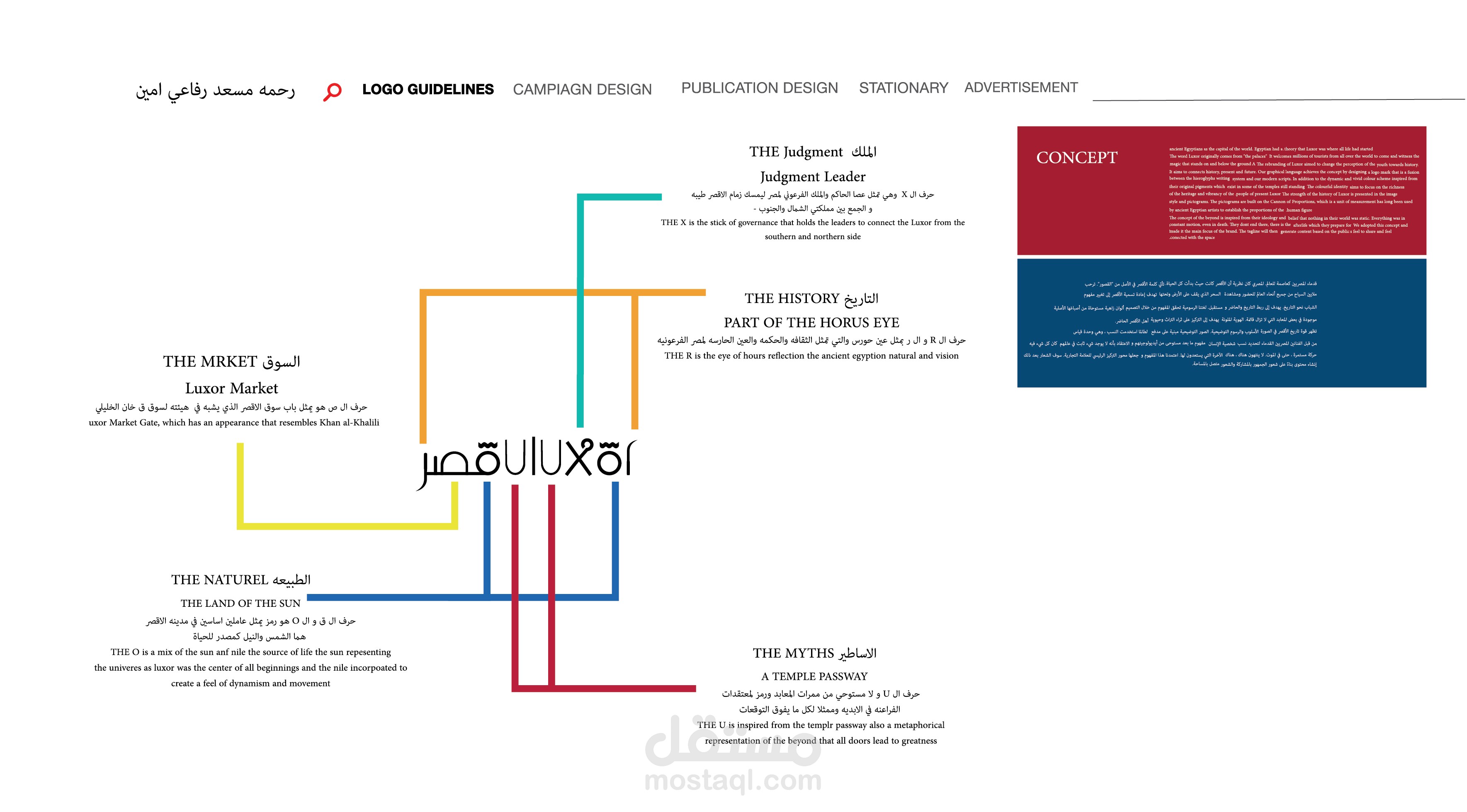 Inspired by the history of the neighborhood and its artistic effervescence of recent years, the project is atribute to the past, present and future. The guideline of the visual identity is based on the aspect of "well-kept secret", "hidden place" and . Refined, modern and high-end were key words to define the overall aesthetics of the project. luxor inspiration is present, both architecturally and graphically to draw a parallel with the essence of the project.