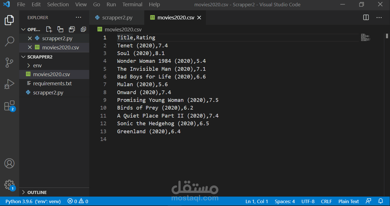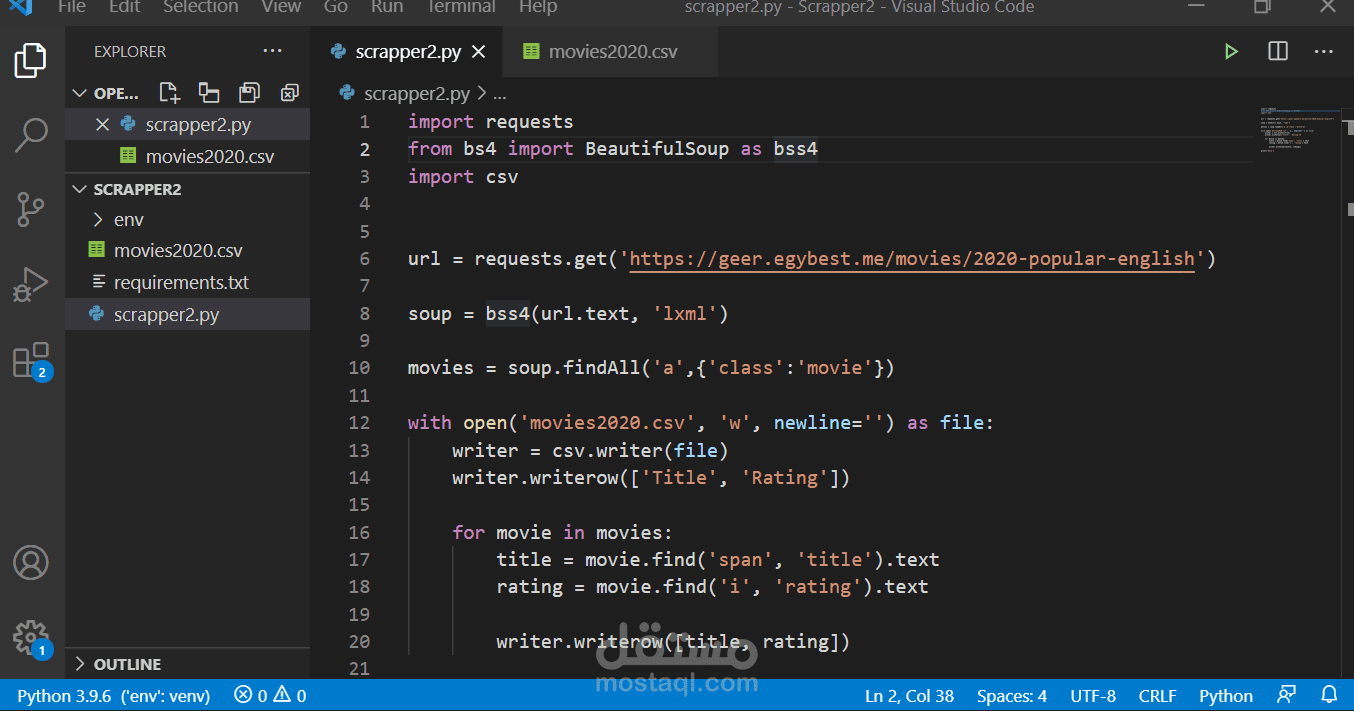 لقد تم عمل اسكريبت استخراج بيانات من موقع EgyBest.com غلى ملف csv