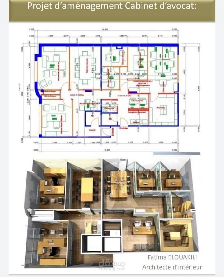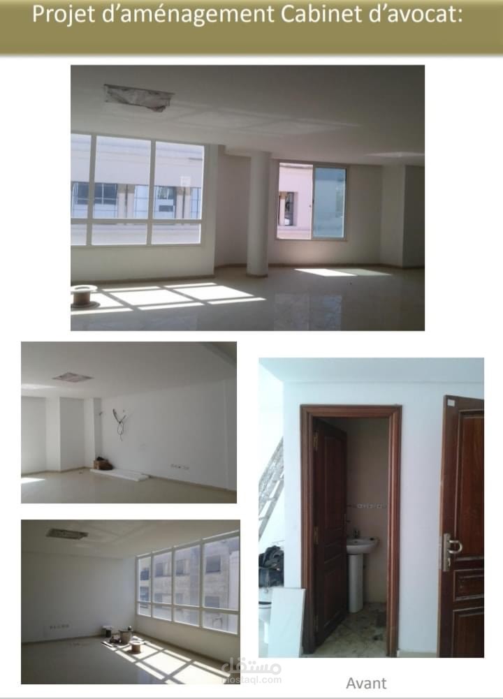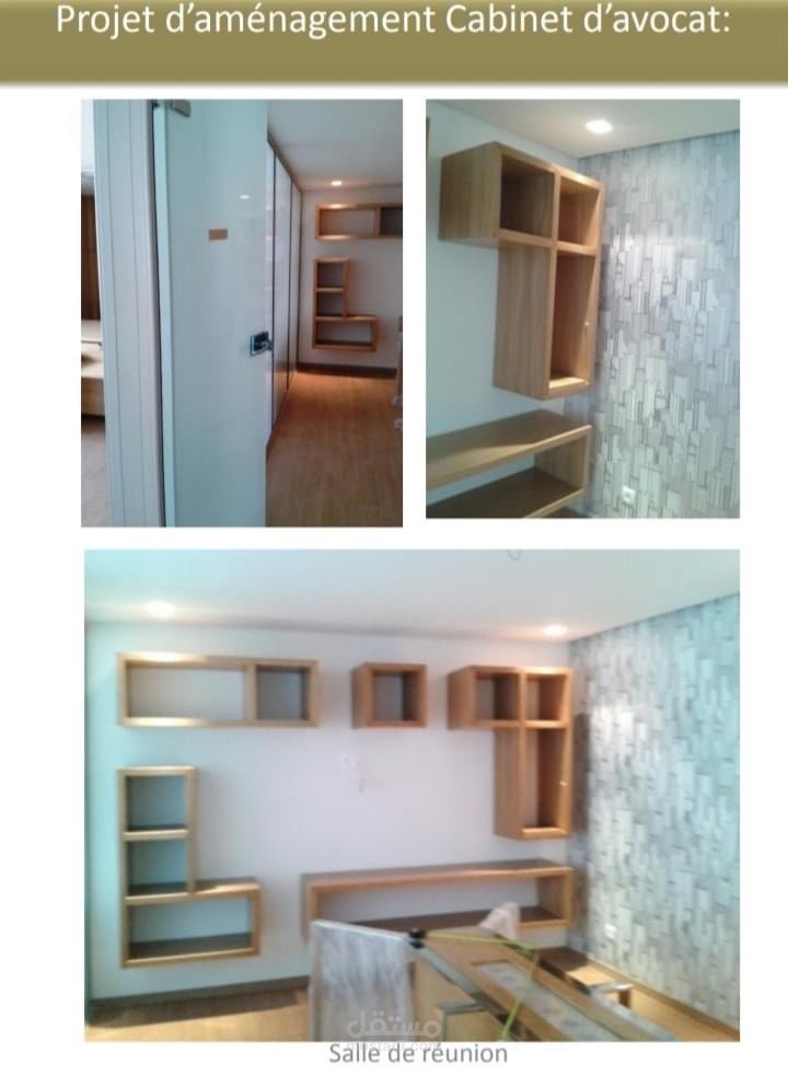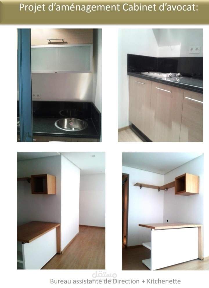 هندسة و تصميم (دراسة ، plans , 3D التنفيذ " الكهرباء و الانارة ، السقف، تصميم الاثاث المكتبي و الخزانات ، الحوائط و الابواب ، الارضيات و الحمامات و kitchenette و قاعة الاجتماعات) لمكتب للمحاماة و هو عبارة في الاساس عن شقتين لشريكين تم فتحهما على بعض من الدراسة لغاية تسليم المكتب مجهز و مفروش و كامل