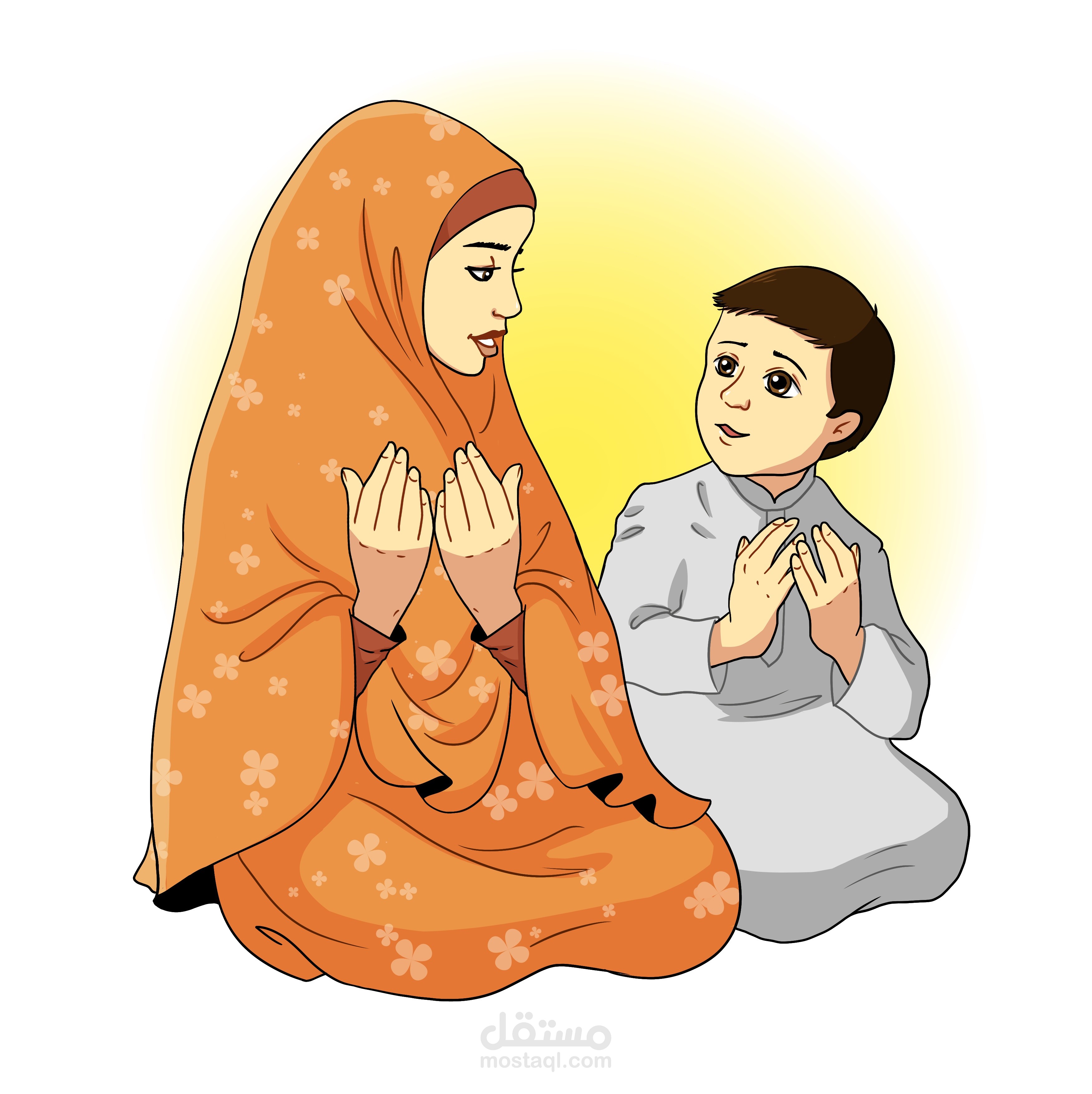 أم وابنها يدعوان معاً