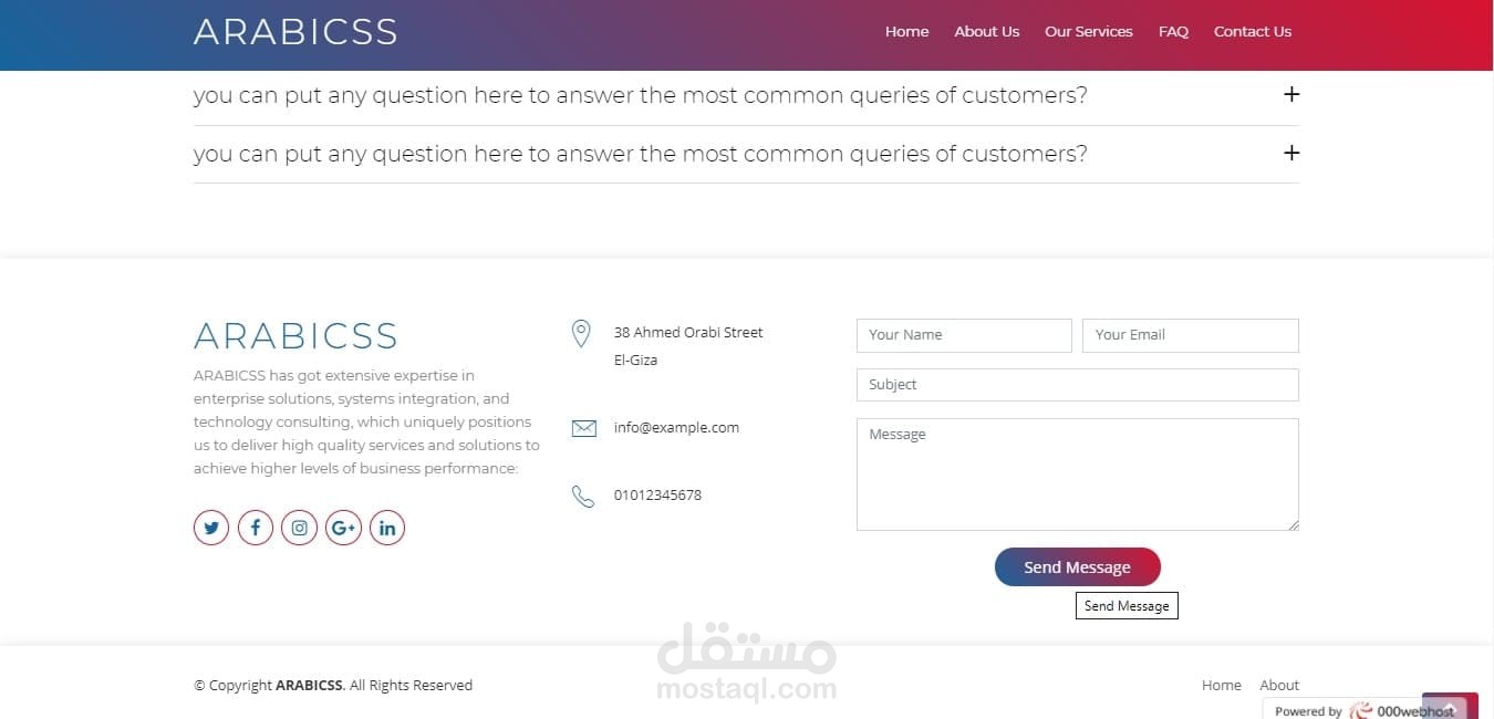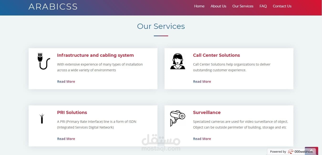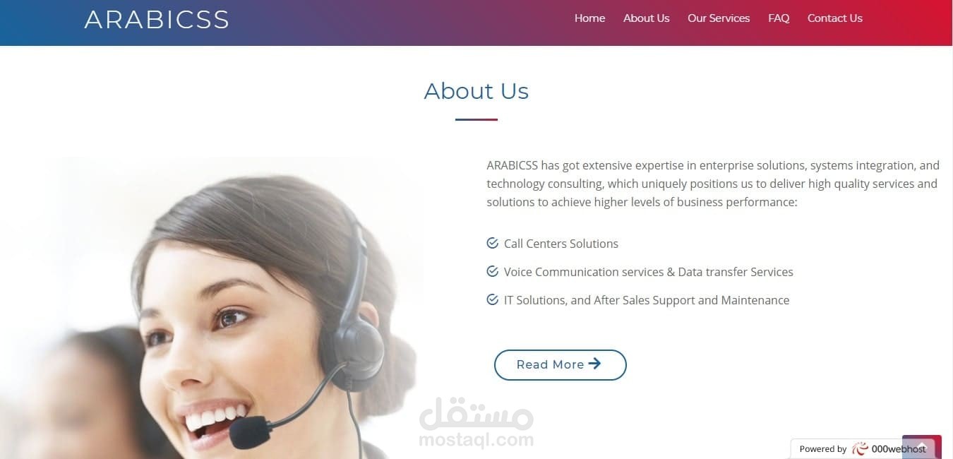 Arabicss هي شركة تعمل في مجال الشبكات و الاتصلات و ارادوا ويبسايت ليكون هوية للشركة الخاصة بهم كتصميم فقط, و هذه هي النسخة الاولي من موقع arabicss