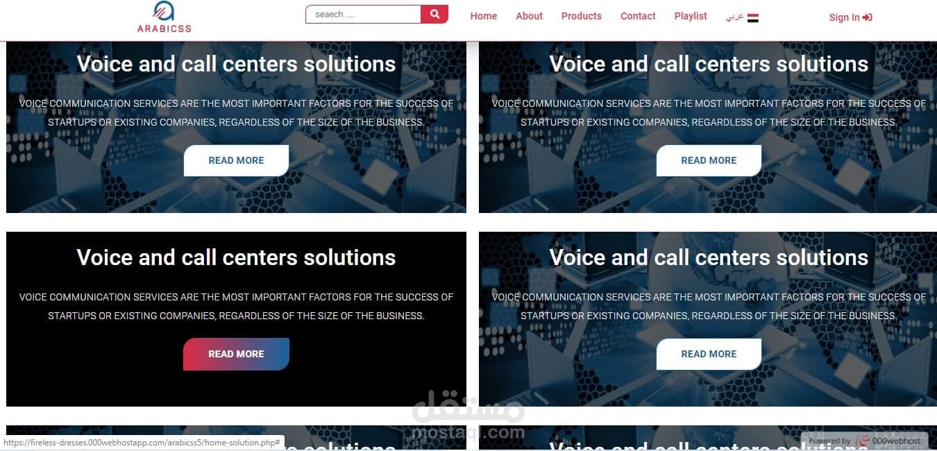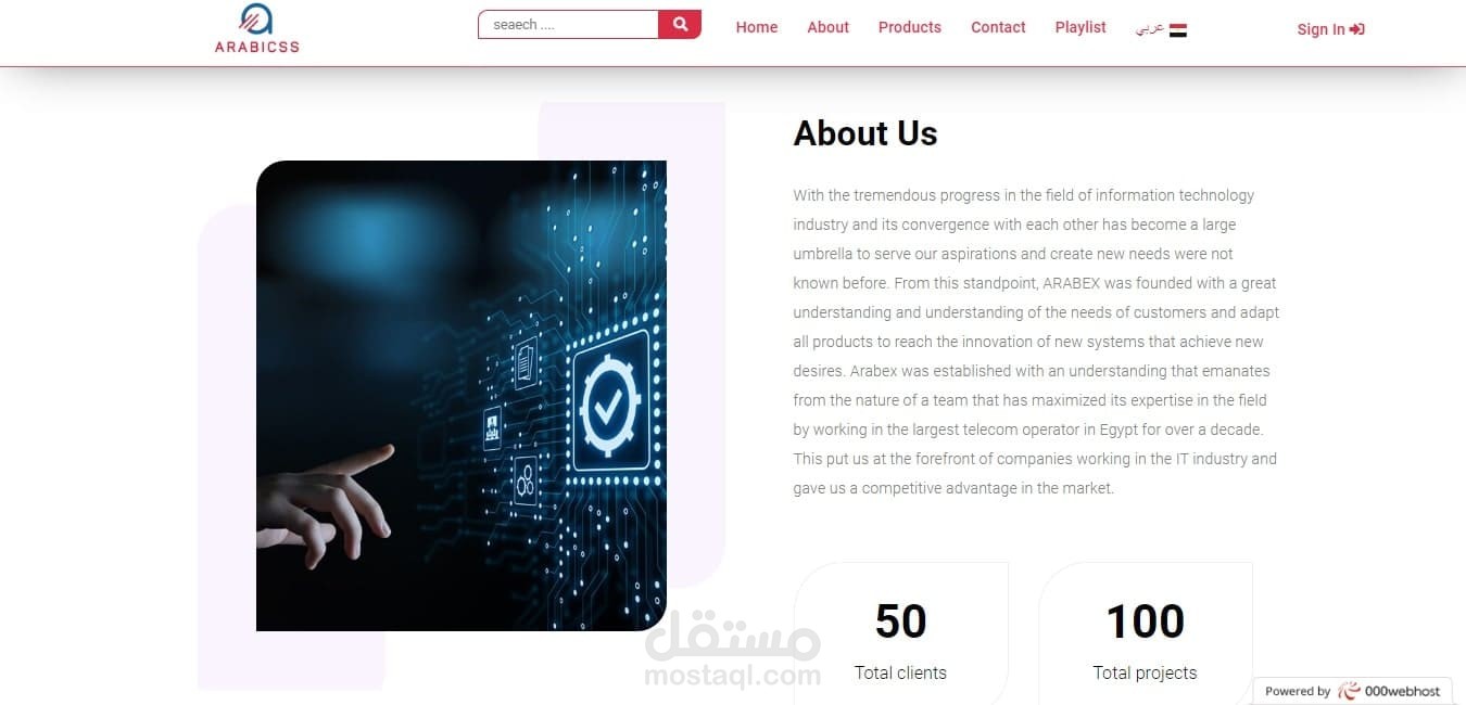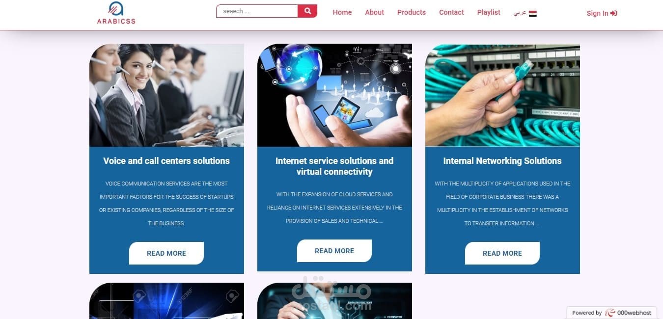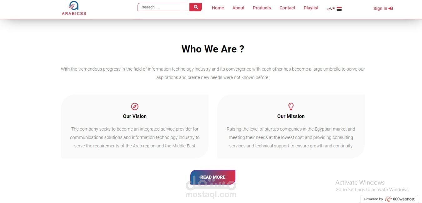 Arabicss هي شركة مصرية تعمل في مجال الاتصلات و الشبكات و ارادوا موقع الكتروني ليكون بمثابة هوية تعريفية لهم, قمت بانشاء هذا الموقع لهم من قبل و لكنهم ارادوا تجديده فقمت بانشاء نسخة اخري منه ارادوا التصميم فقط و الموقع يحتوي علي: