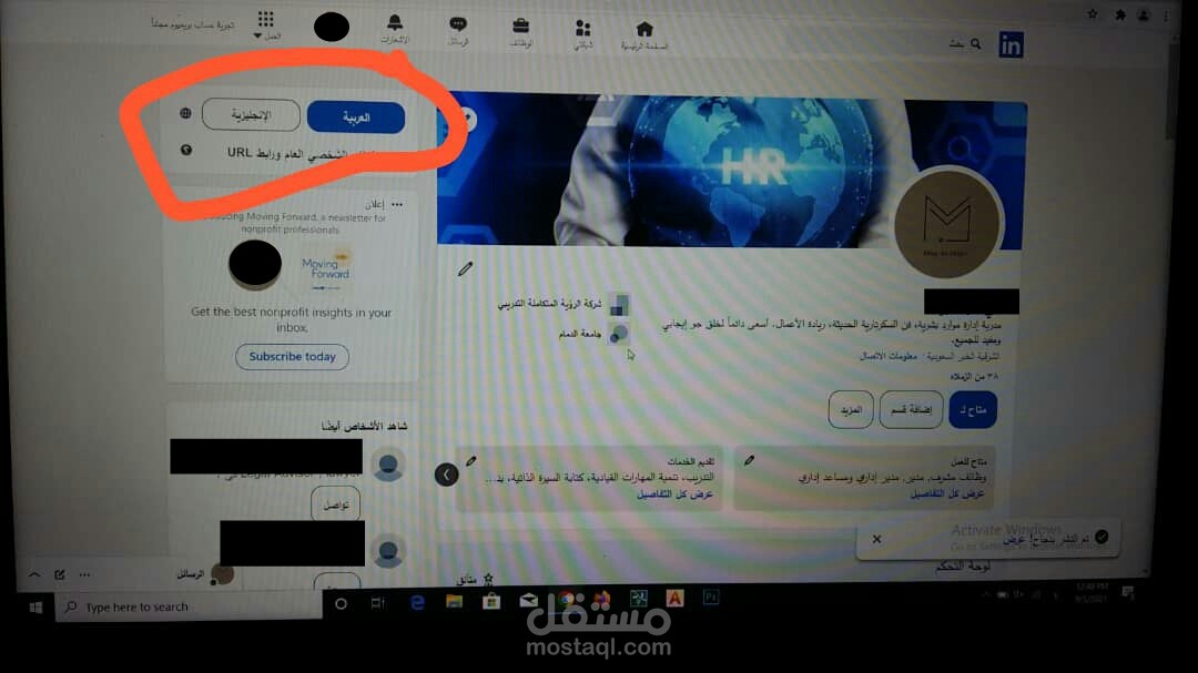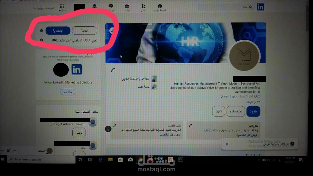 قمت بعمل حساب على موقع اللينكد ان وتعبئة كافة تفاصيله من اللغة للخبرات للشهادات العلمية وحتى الإنجازات وقمت برفع السيرة الذاتية على الموقع أيضا.