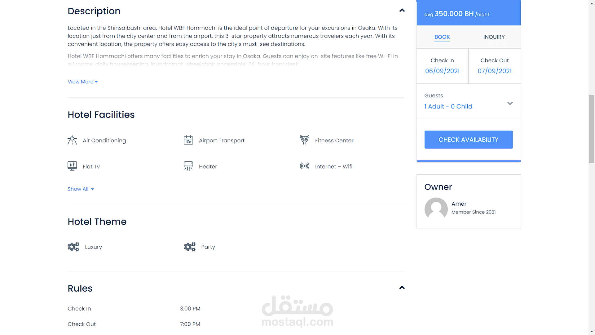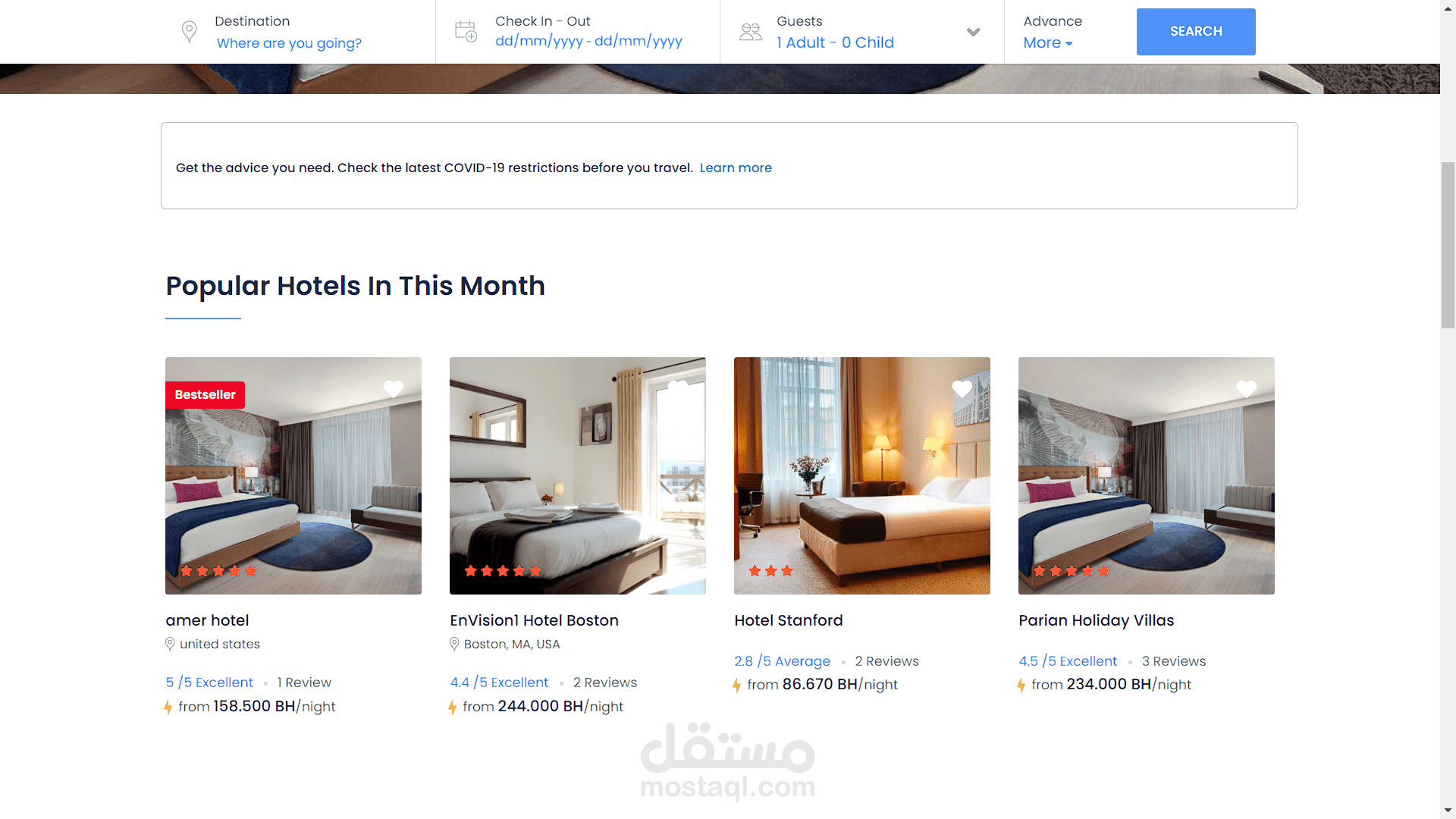 تم استخدام ثيم مدفوع لحجوزات الفنادق .