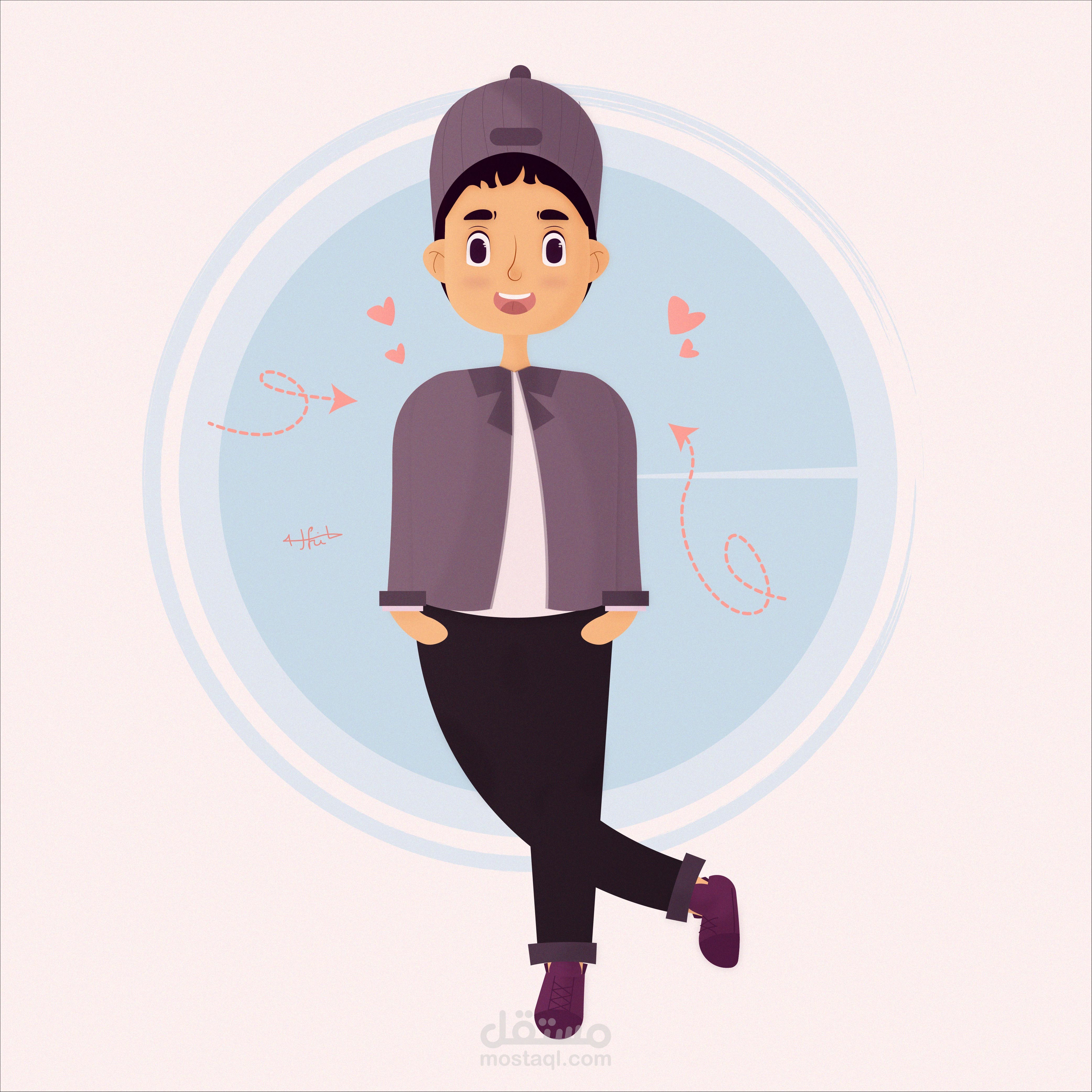 تم استخدام الأشكال واداة الـ pen tool في رسم الشخصية