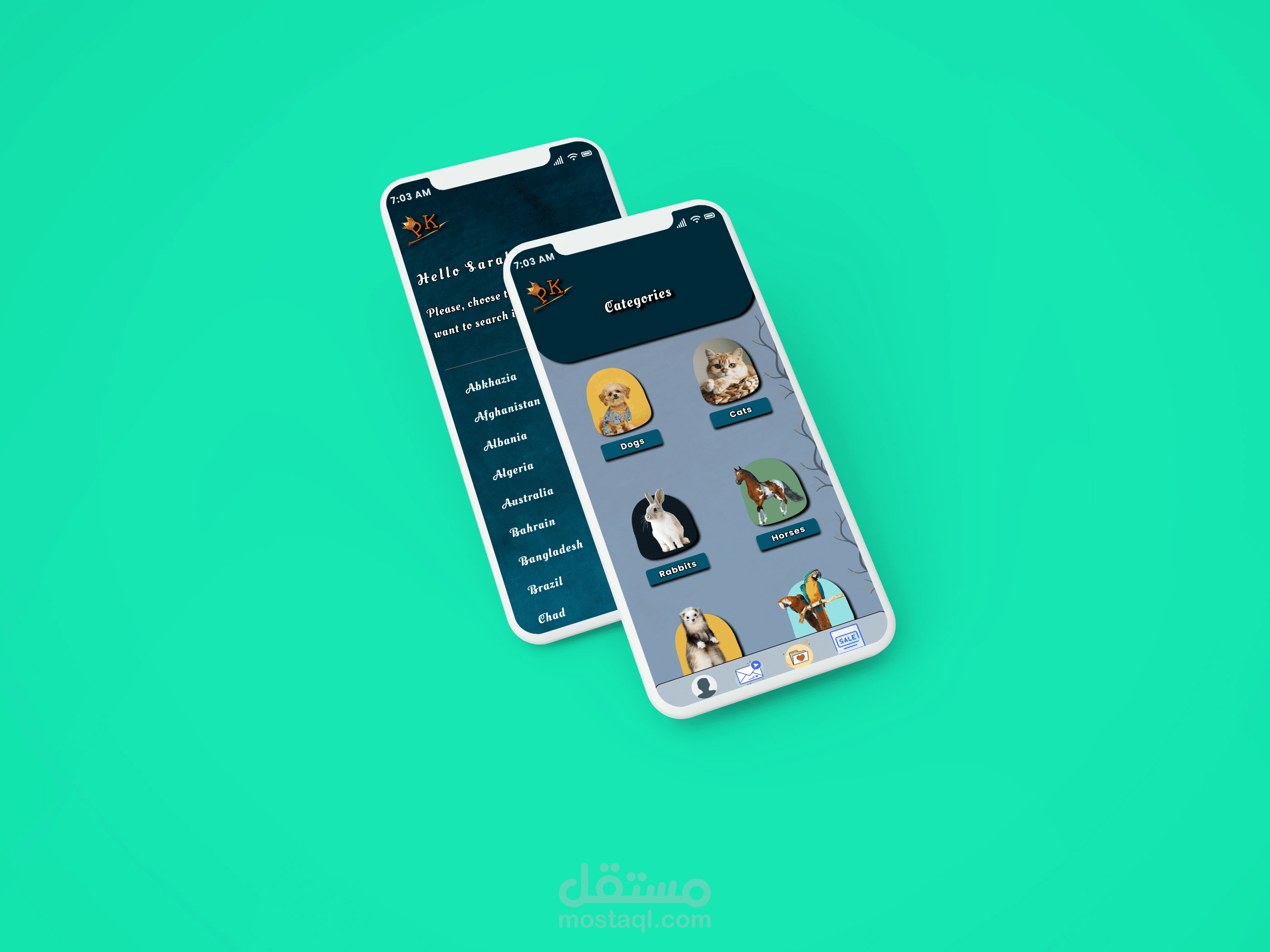تصميم تطبيق لبيع وشراء الحيوانات الاليفة ومسلتزماتها حول العالم.