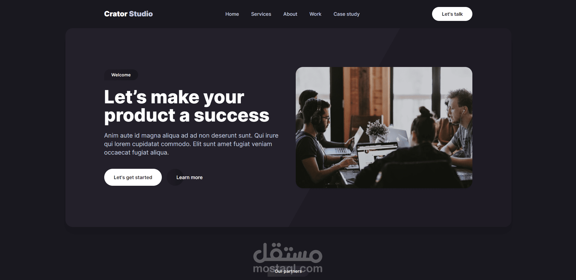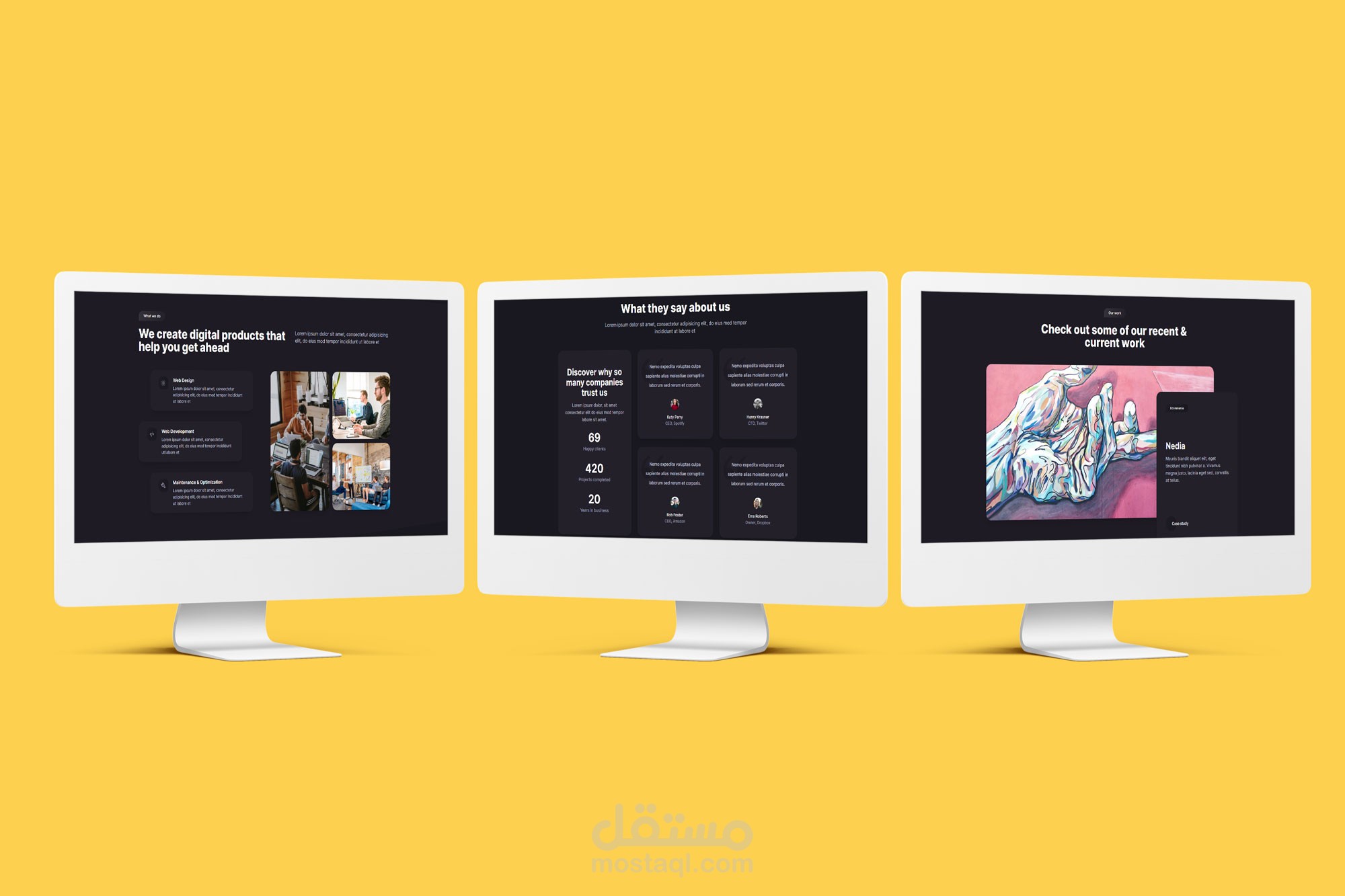 المشروع عبارة عن موقع لشركة مختصه بتقديم خدمات الميديا والمونتاج تم فيه استعمال tailwindcss لتصميم الواجهة frontend اما لوحة الادارة فتتم بواسطة جانجو (wagtail)