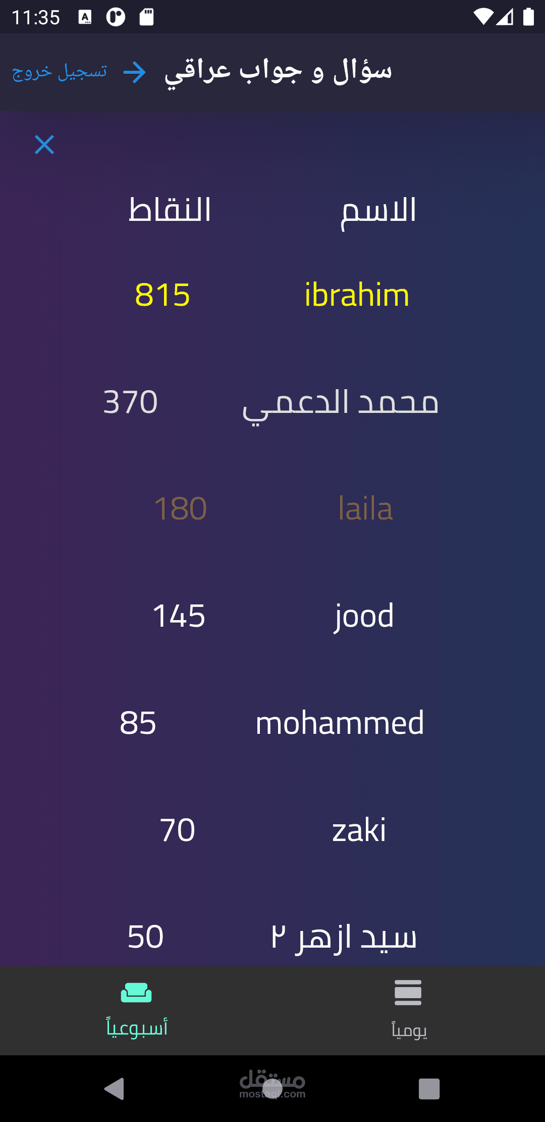 فيها قوائم للمتصدرين بشكل يومي و اسبوعي