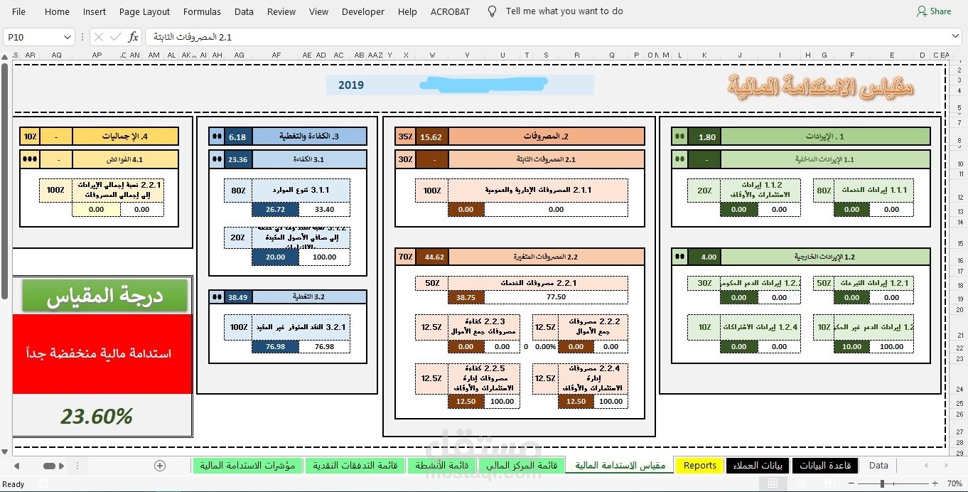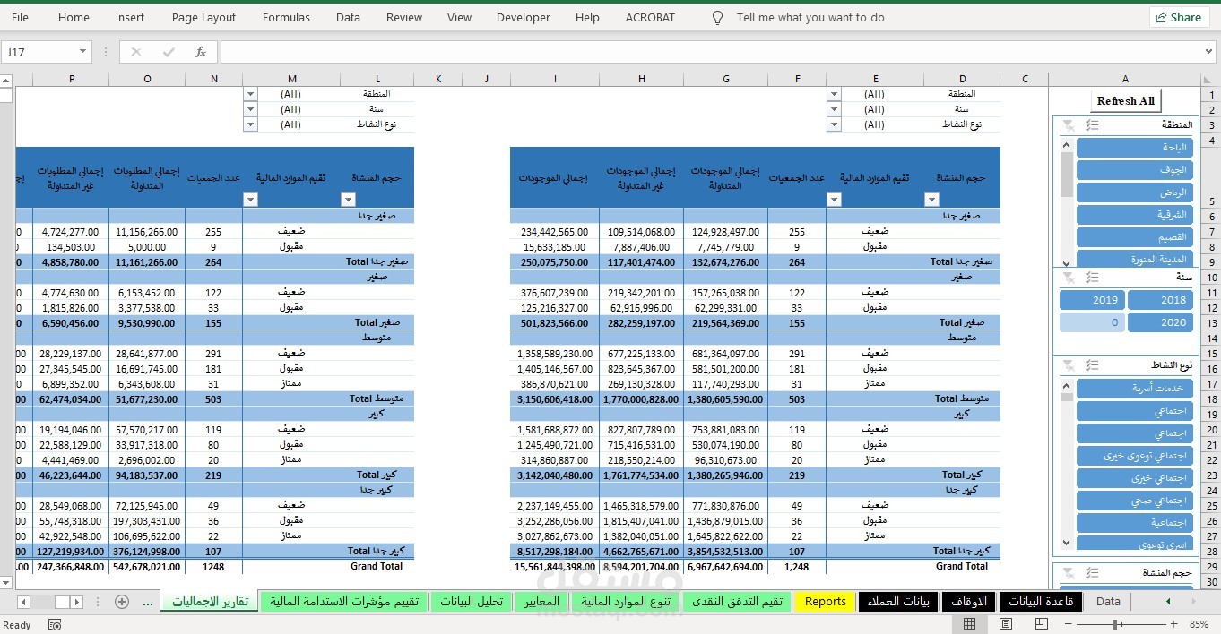 - اعداد شيت يحتوى على مفاتيح لتسهيل الانتقال بين التقارير