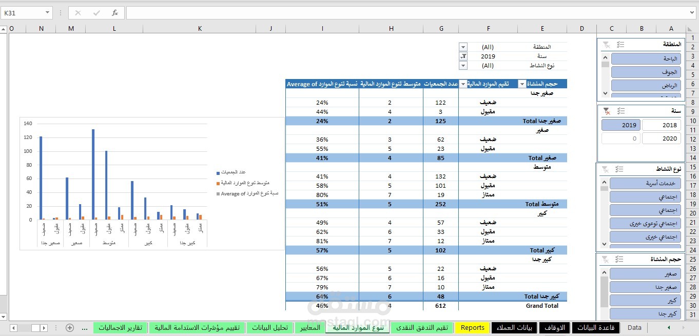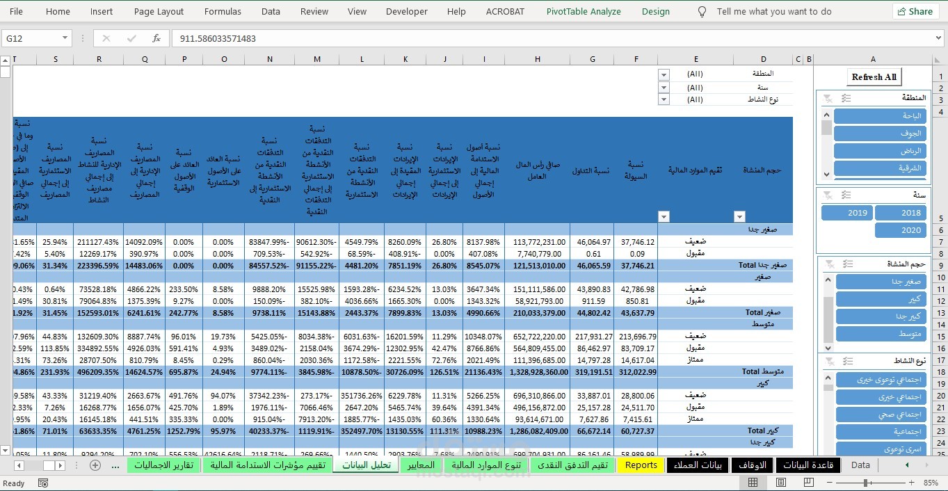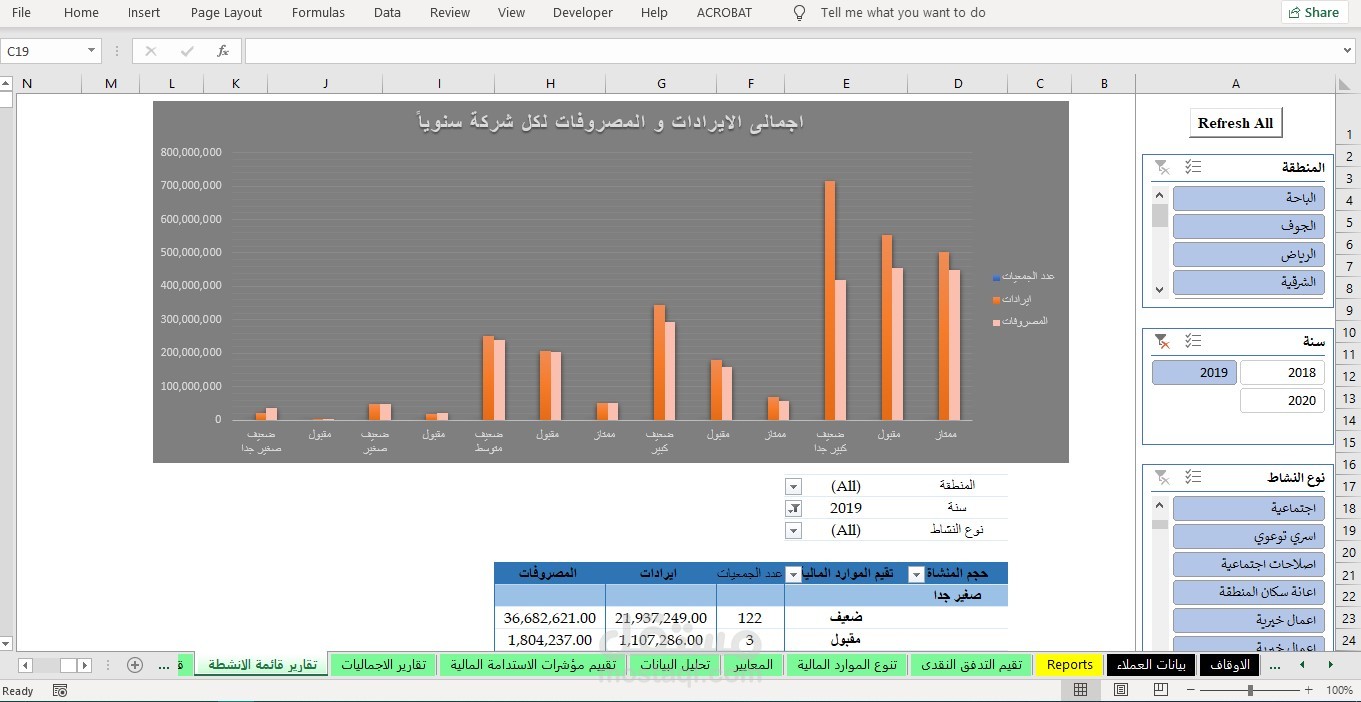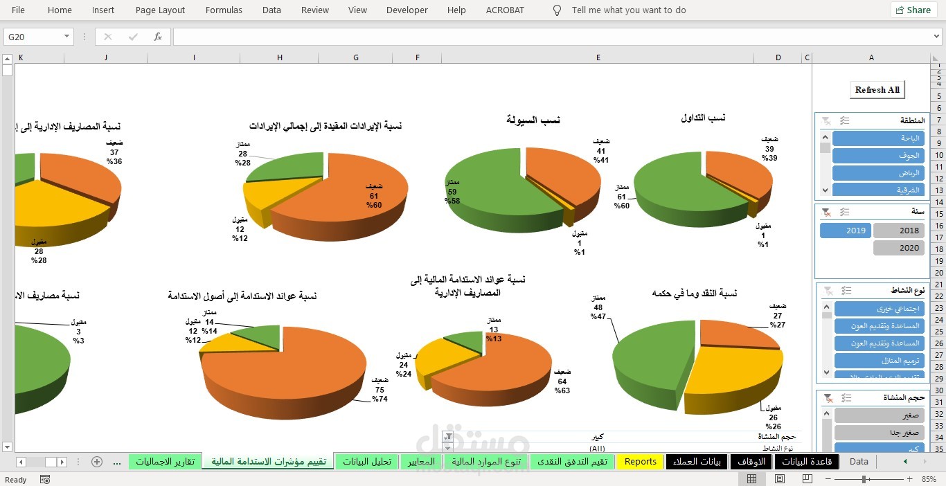 - اعداد لوحات تفاعليه تشمل النسب الماليه و المصروفات و الايرادات و يتم التحكم فيها عن طريق ال silcer