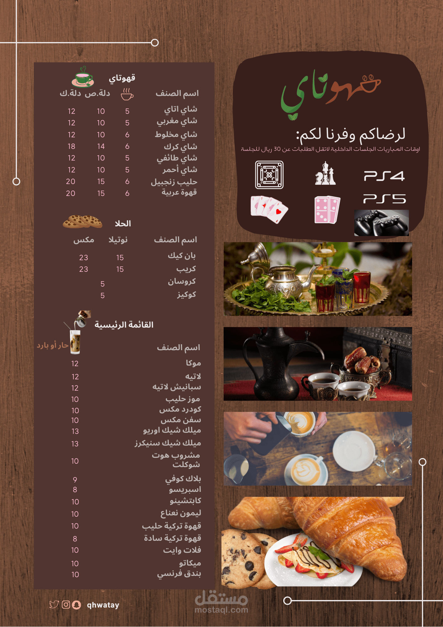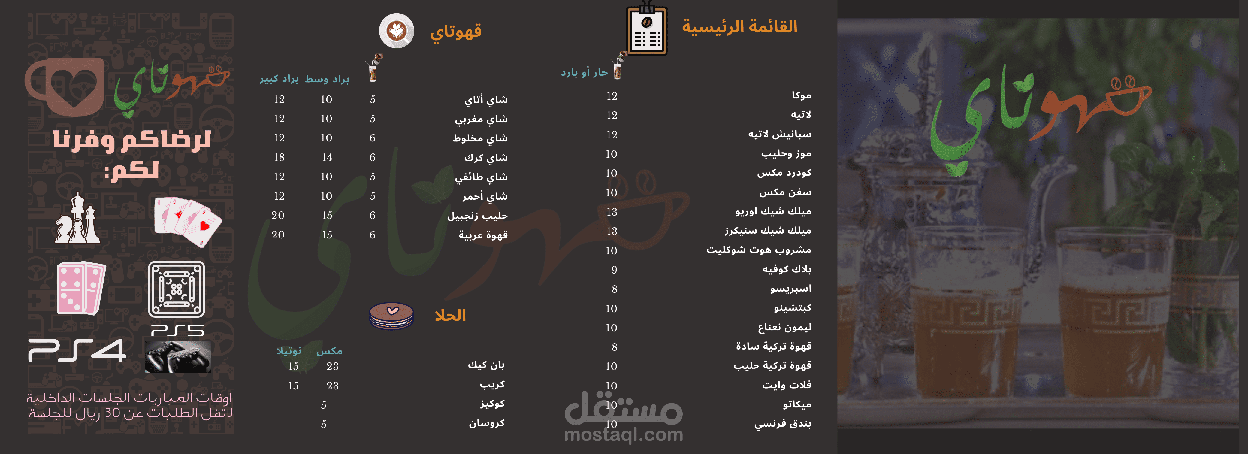 أصمم قائمة طعام لمقهى أو مطعم حسب حاجة الزبون.