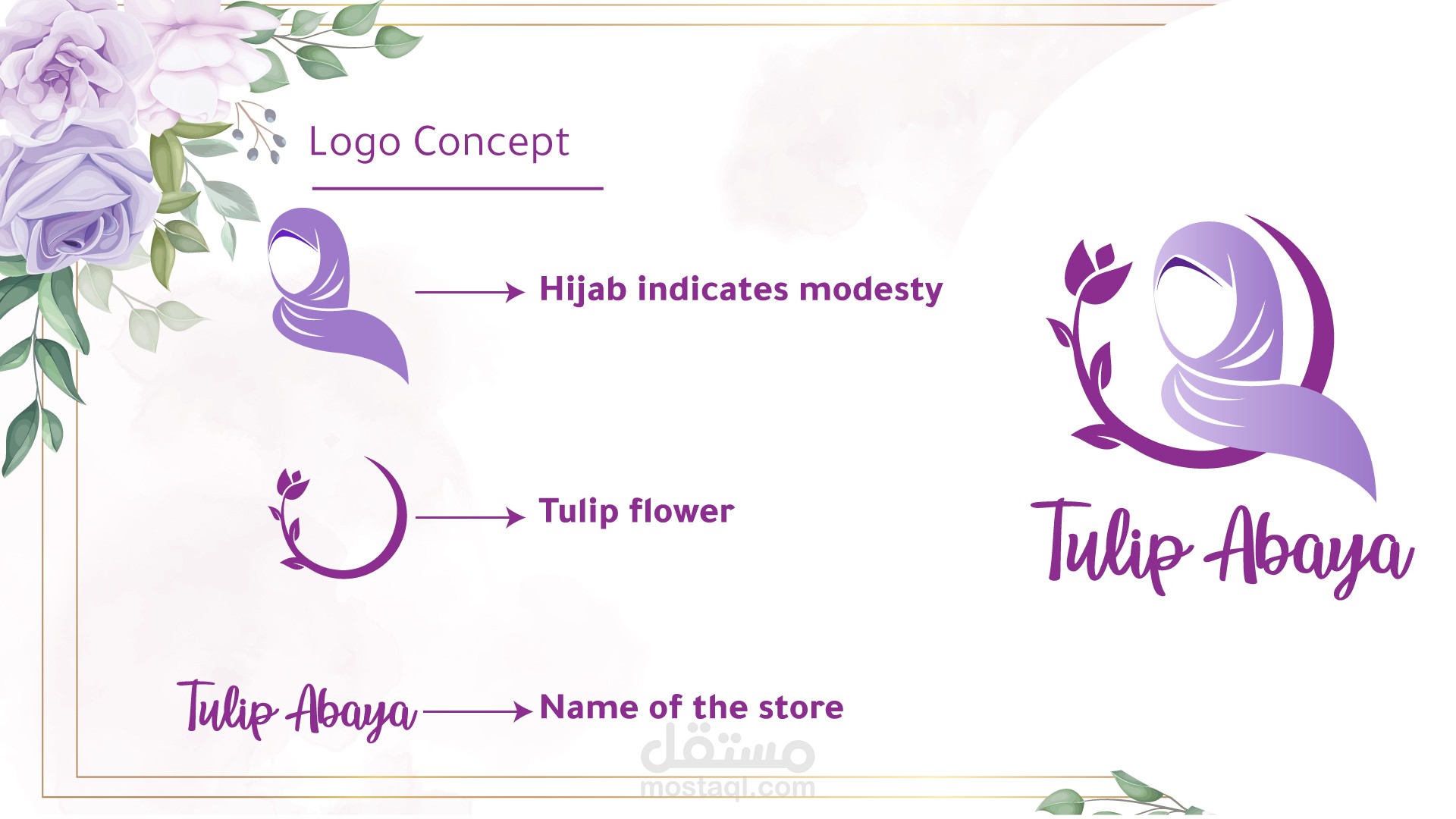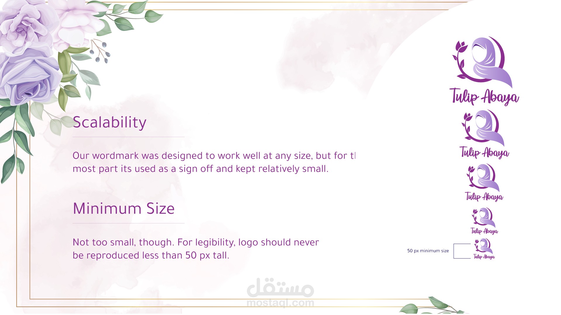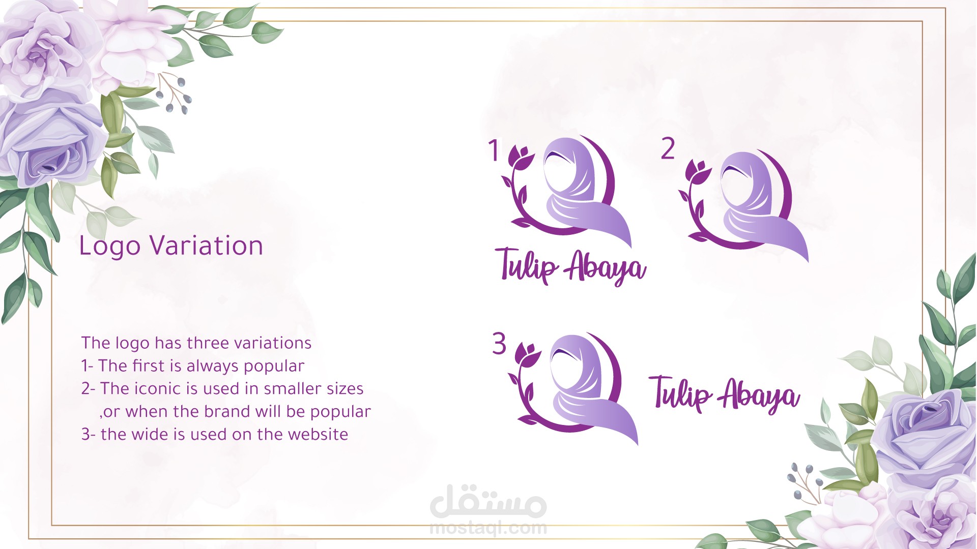 تصميم هوية بصرية و guidelines لمحل tulip Abaya