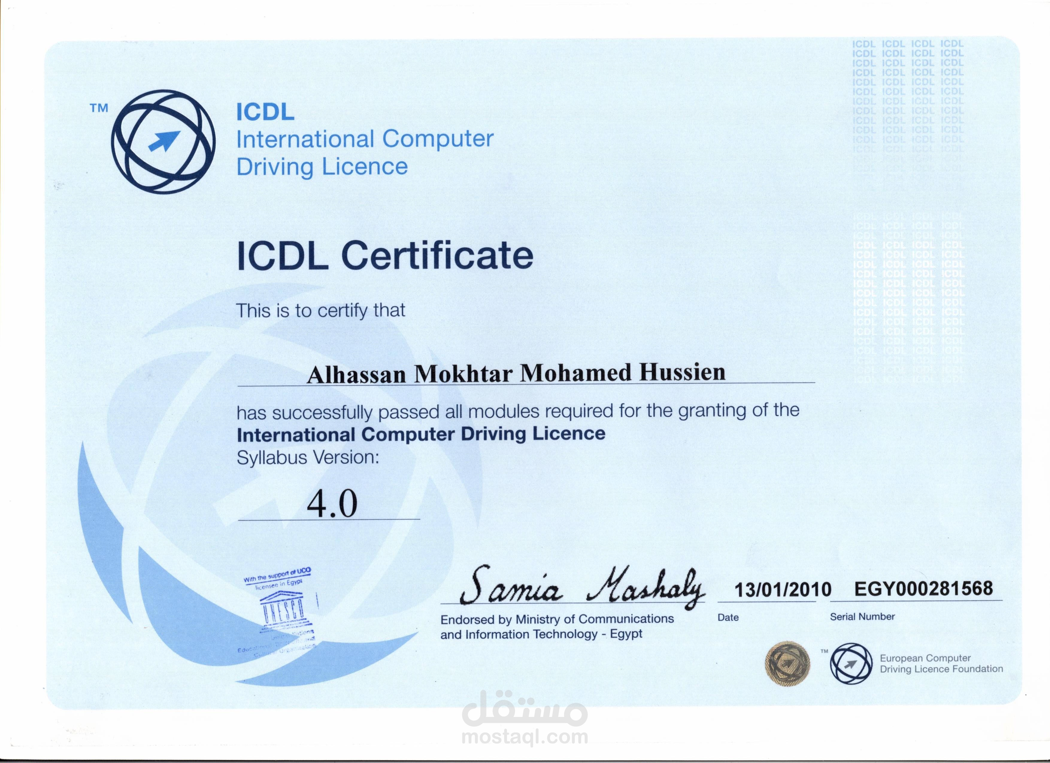 International Computer Driving License (ICDL 4 – ICDL 5).