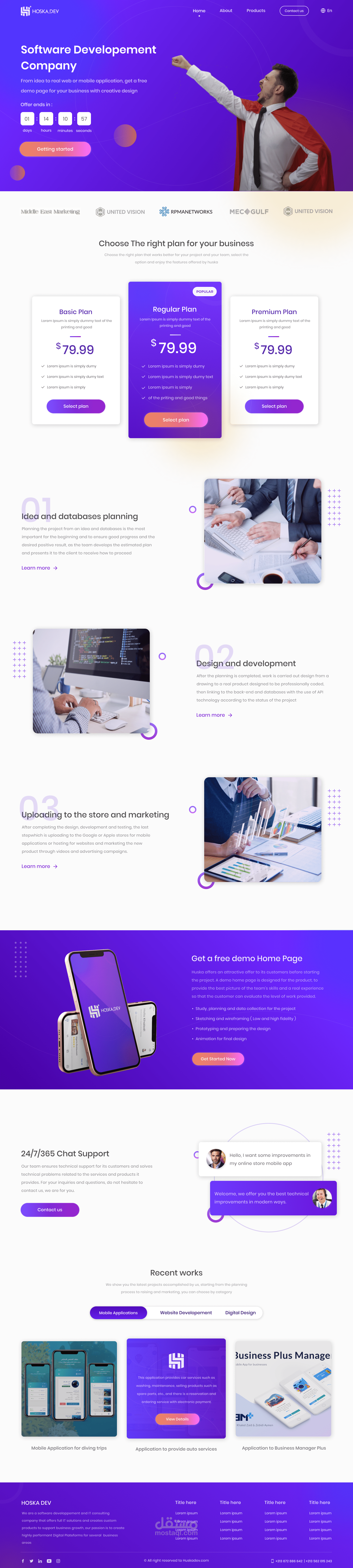 Hoska Dev هي شركة تطوير برمجيات تقدم خدمات تطوير ، يريد العملاء مجموعة إبداعية لعرض أعمالهم.