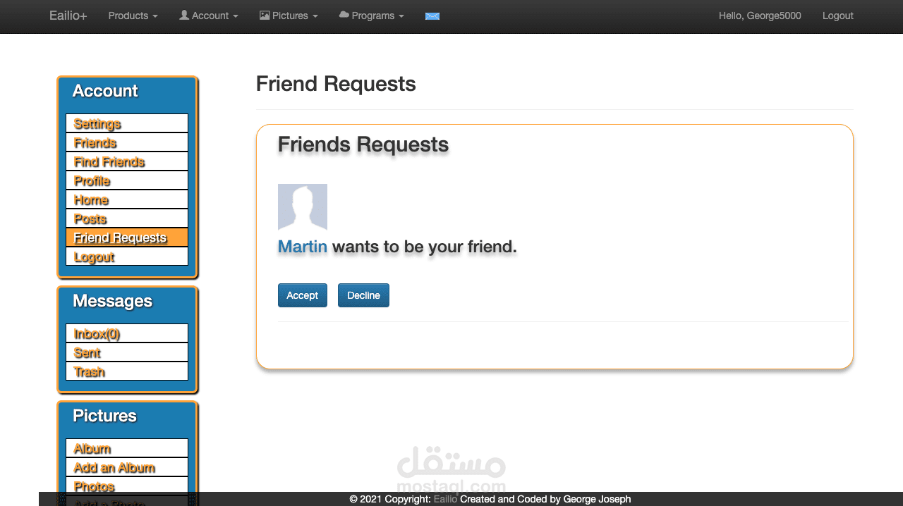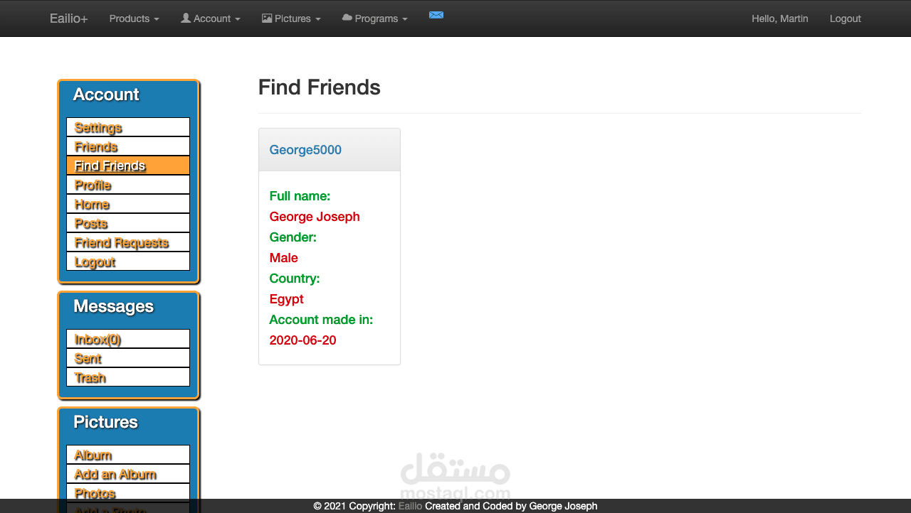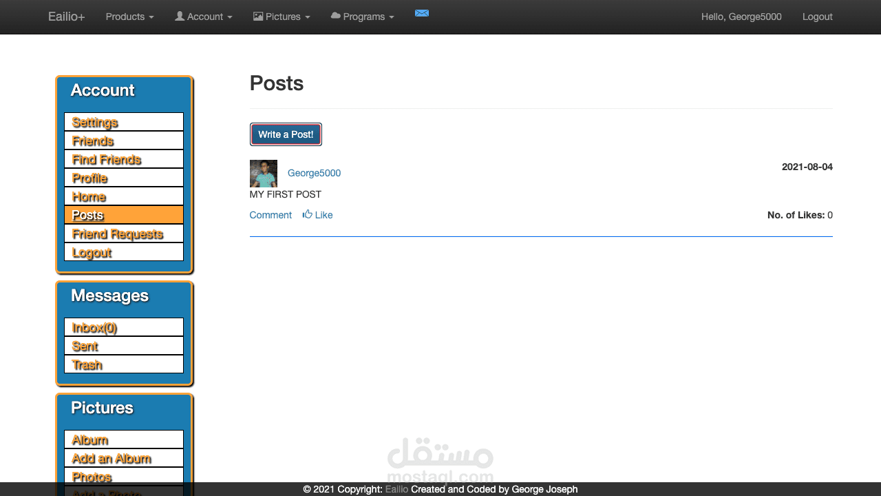 من المحتمل أن يكون Eailio أحد أكثر المشاريع المحبوبة التي قمت بها على الإطلاق نظرًا لقابليته للتوسع والميزات العديدة المضمنة فيه. عندما كنت في العاشرة من عمري ، كنت أحلم بإنشاء موقع ويب للتواصل الاجتماعي يحتوي على معظم الميزات المحببة ومنذ ذلك الحين كرست الكثير من الوقت والجهد لأرقى إلى مستوى هذا الحلم ، أنشأت هذا المشروع الضخم بمميزاته المتنوعة.