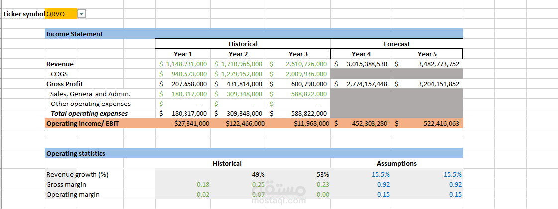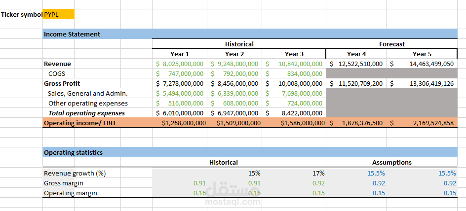 تم ادخال الحسابات الخاصة بالشركة ومعالجتها ثم عمل افتراضات مستقبلية بناء على هذه المعلومات لتوقع مكاسب / خسائر المؤسسة.