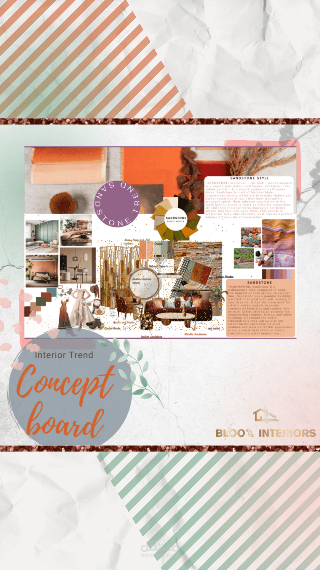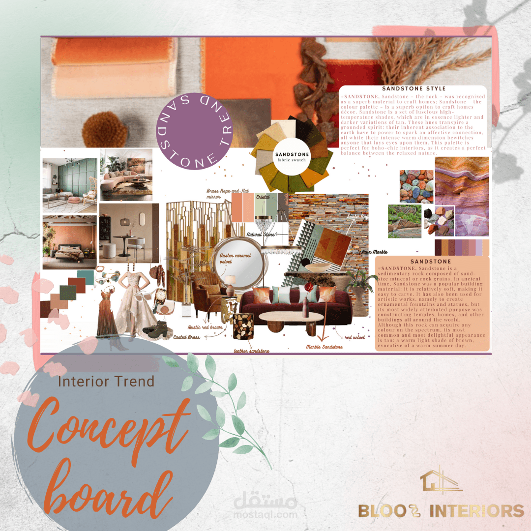 An interior design trend concept board.. inspired from the "Sandstone" trend