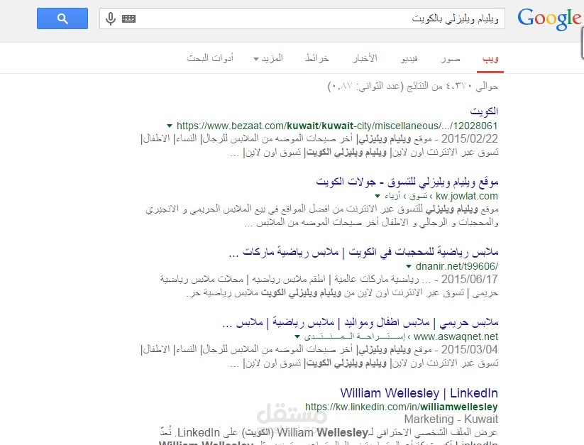 ويليام للملابس بالكويت قم واحد بجوجل في 30 يوم في محركات حث جوجل واشهار المواقع