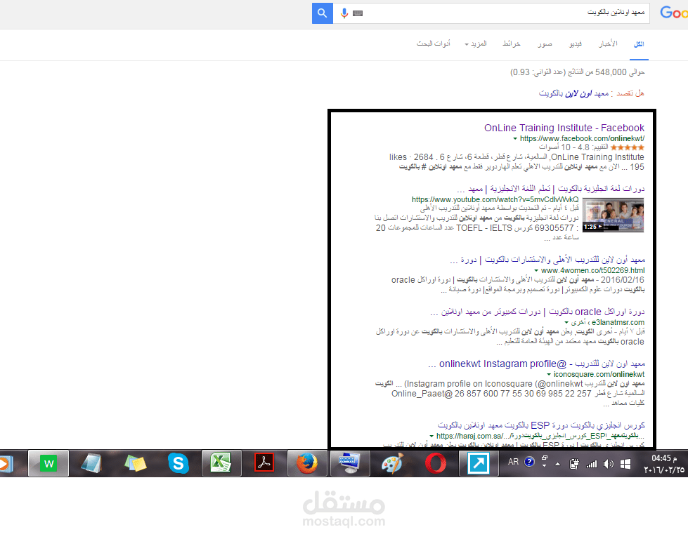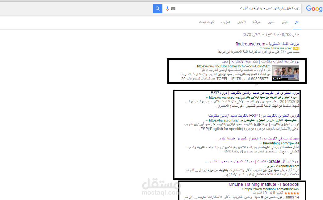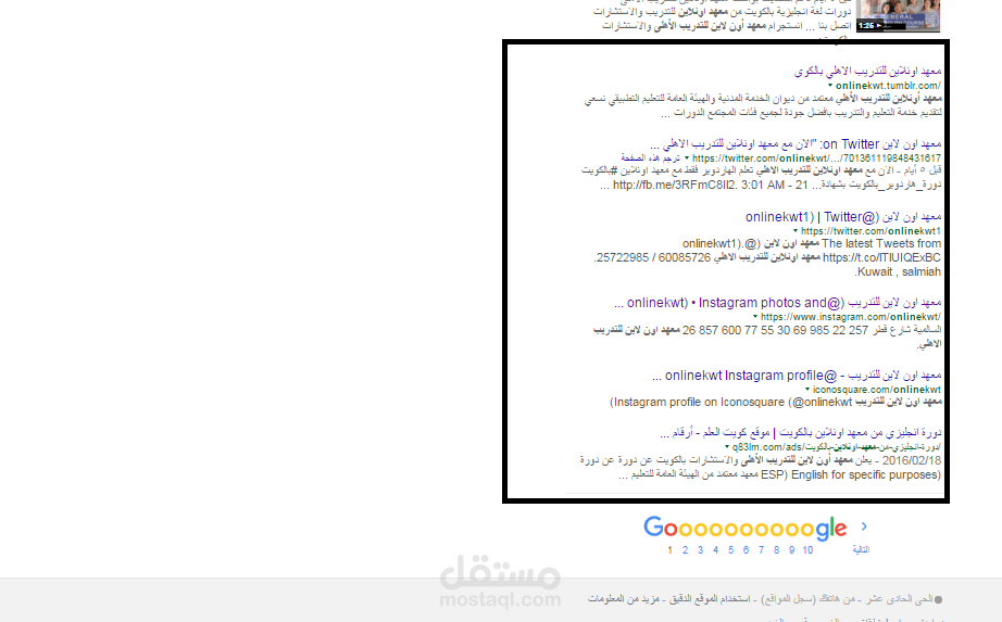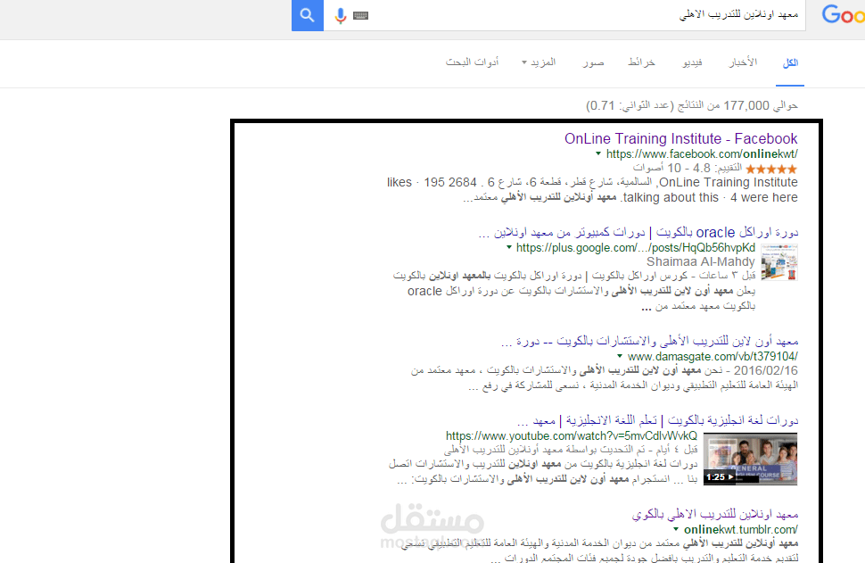 معهد اونلاين للتدريب الاهلي والاستشارات بالكويت رقم واحد بجوجل في 12 يوم في محركات حث جوجل واشهار المواقع