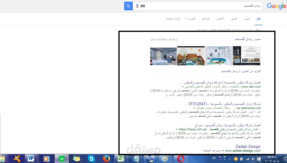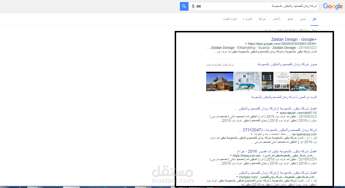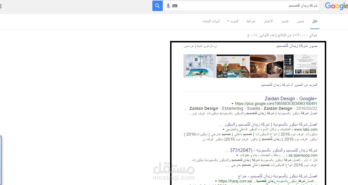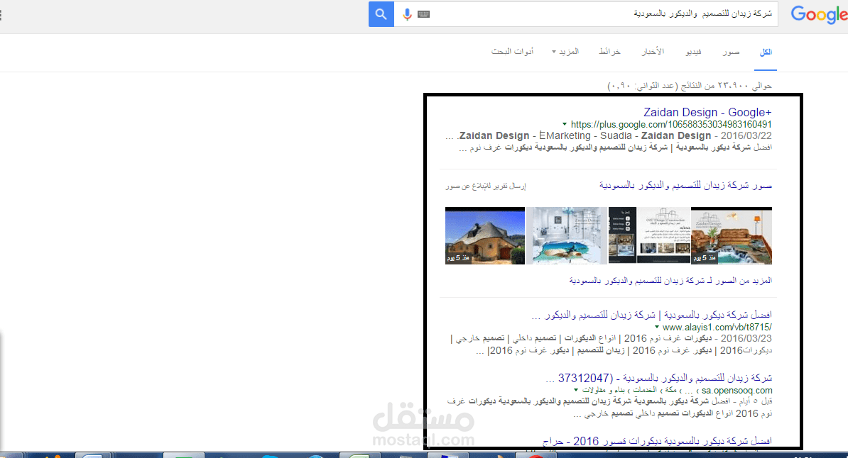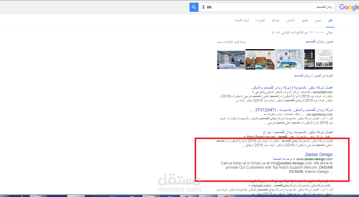 شركة زيدان للتصميم والديكور رقم واحد بجوجل في22 يوم في محركات حث جوجل واشهار المواقع
