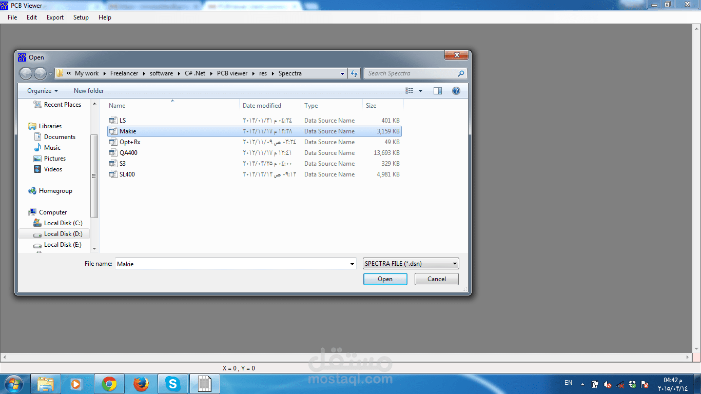 Design and implement C# windows application for parsing PCB SPECCTRA files and convert it to PCB layout using DirectX.