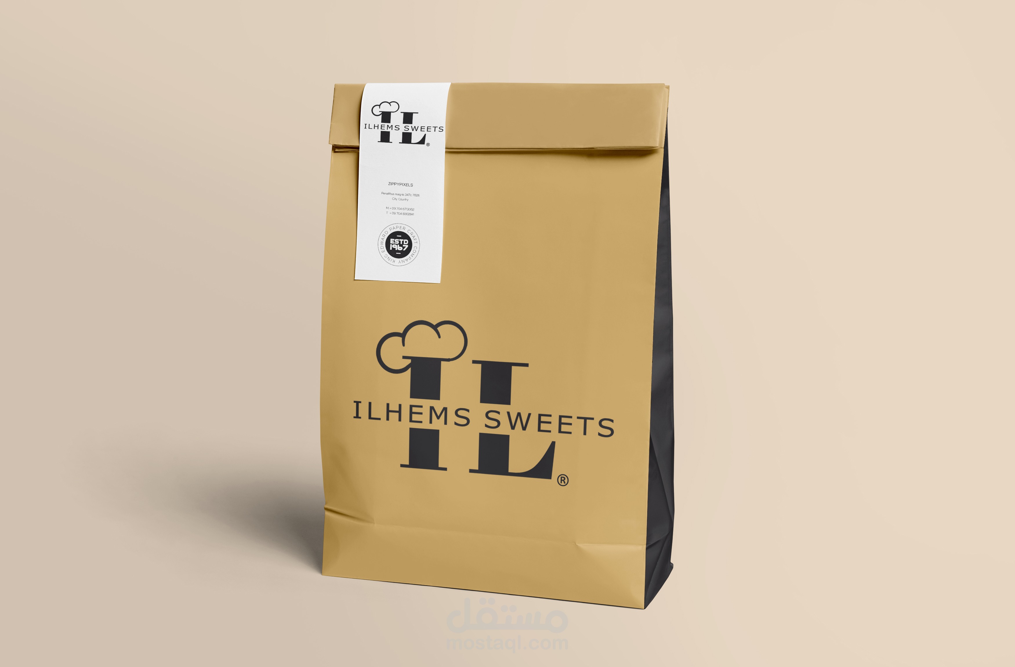 مشروع لوغو خاص ببيع الحلويات متكون من اسم صاحب المشروع