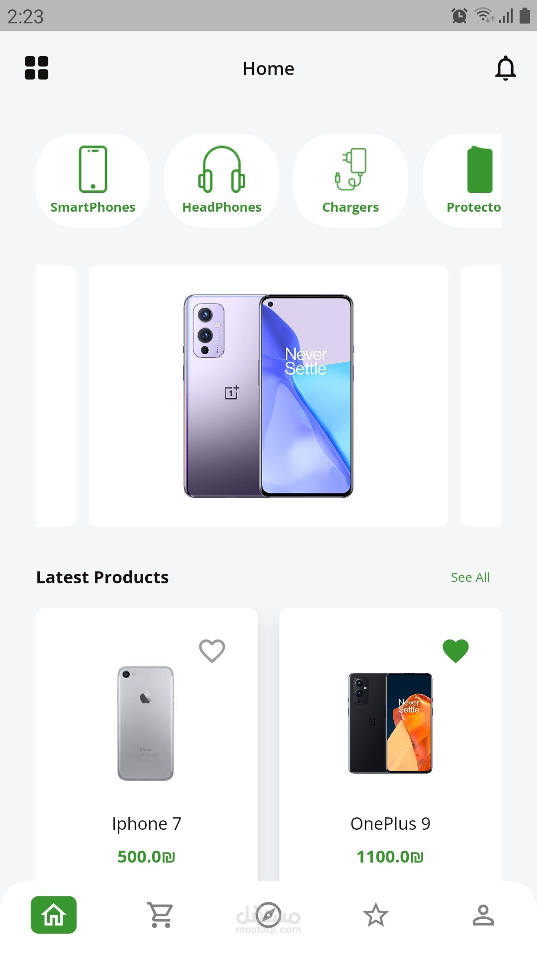 هو تطبيق متجر الكتروني لبيع الهواتف الذكية وملحقاتها، حيث يرتبط بوسيلة دفع، ويحتوي على العديد من التقسيمات وبامكانك إضافة العناصر للسلة وصولا الى شراء المنتج.