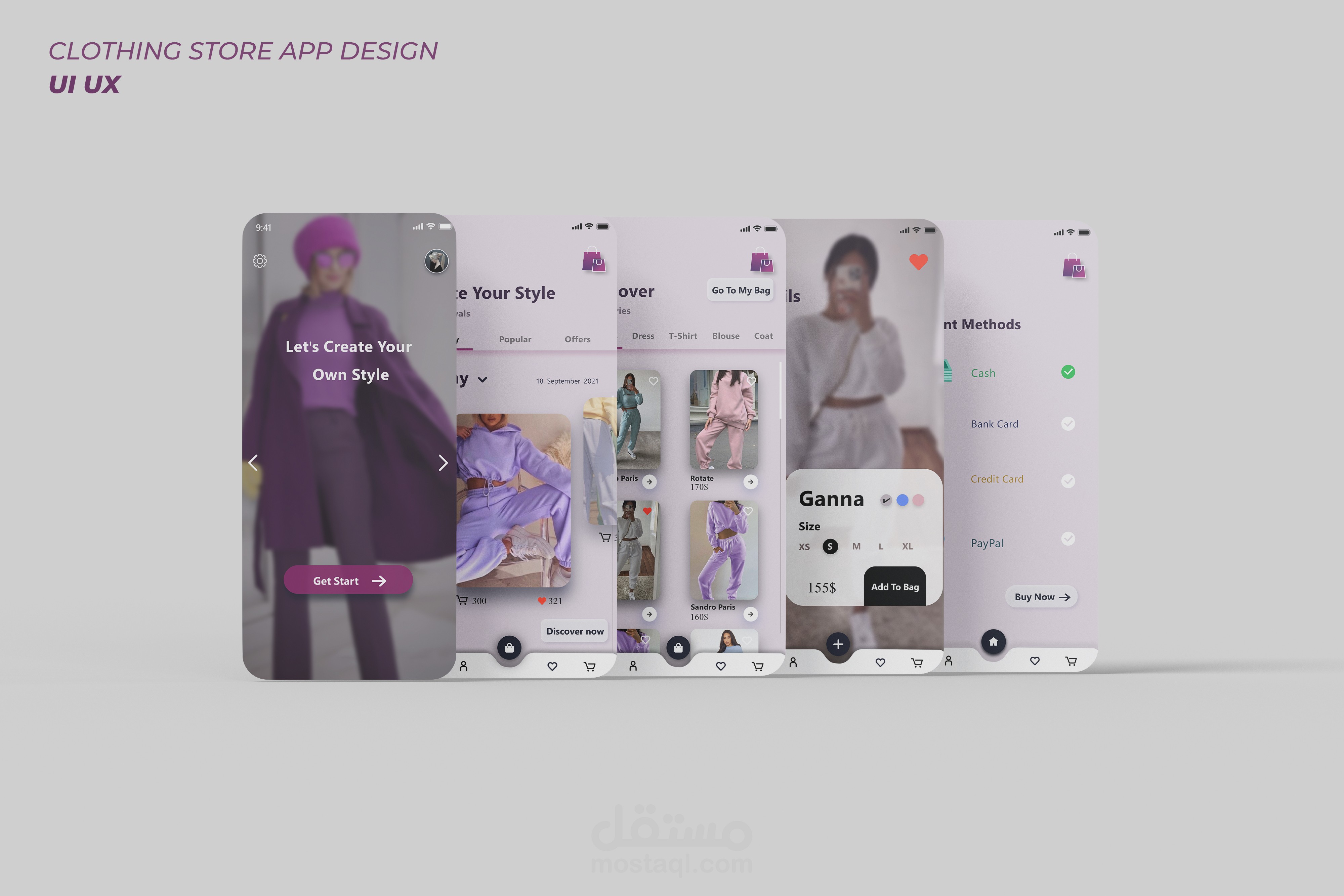 تصميم واجهات تطبيق متجر لبيع الالبسة HandiGo
