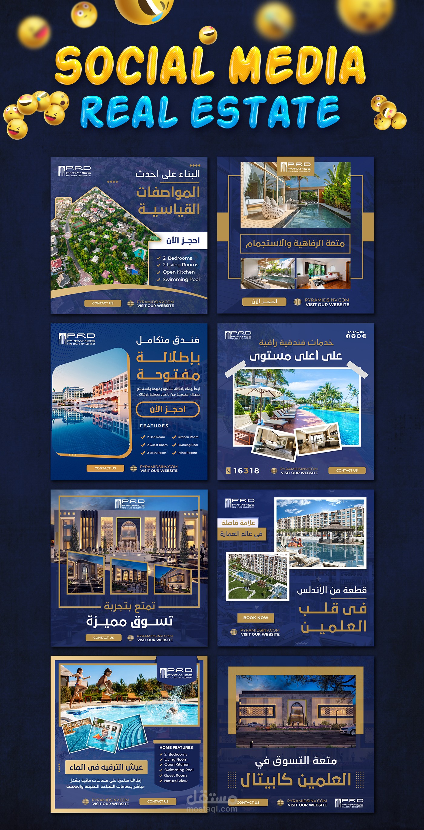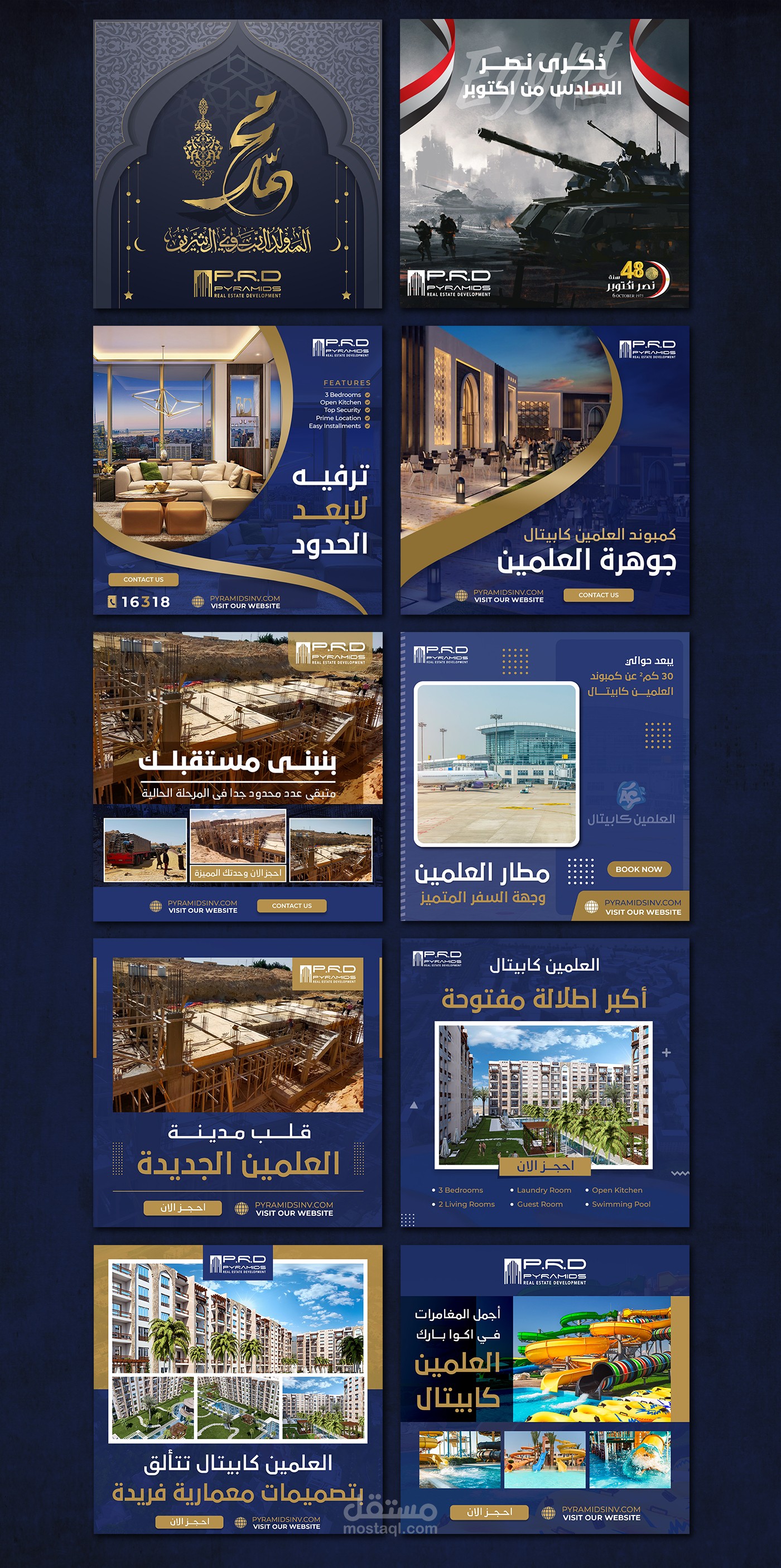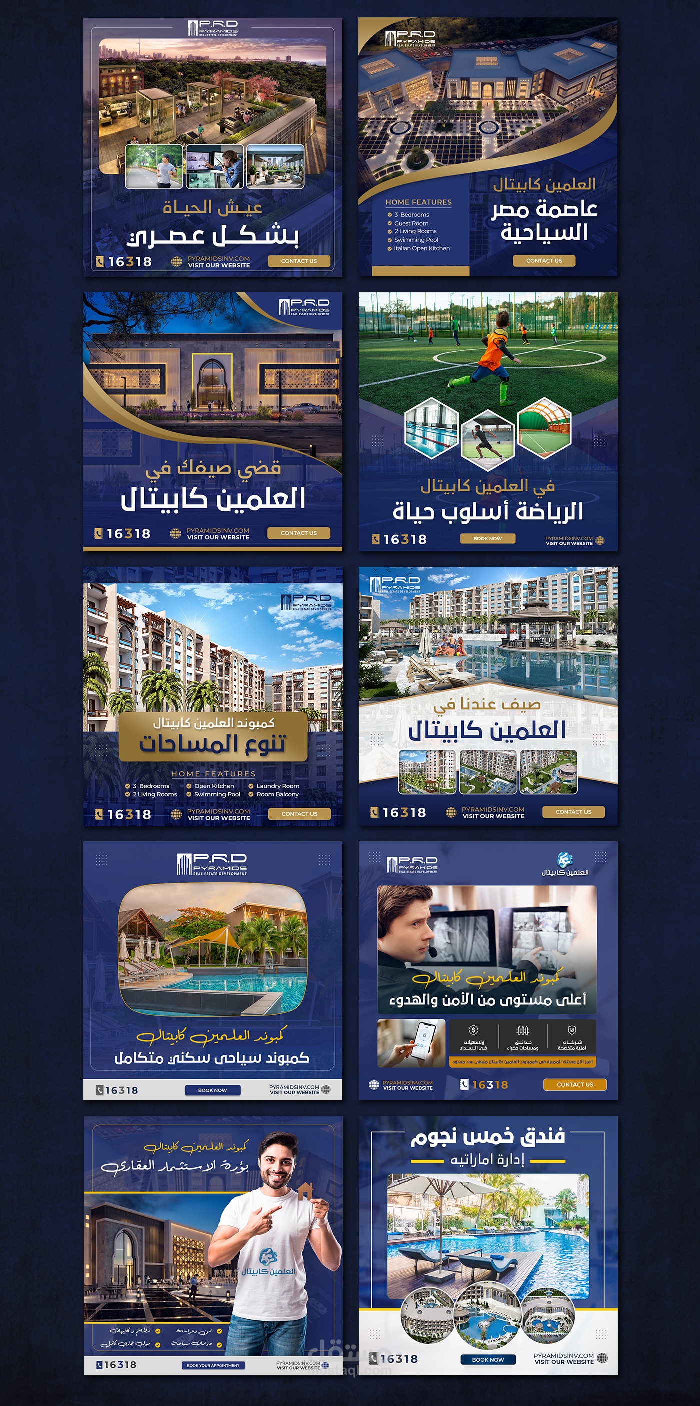 More than 30 social media designs for Pyramids Real Estate Company for the El Alamein Capital project Al Alamein Capital is an integrated tourist compound that includes many integrated tourism services such as a tourist hotel, a commercial mall, and luxury residential units.