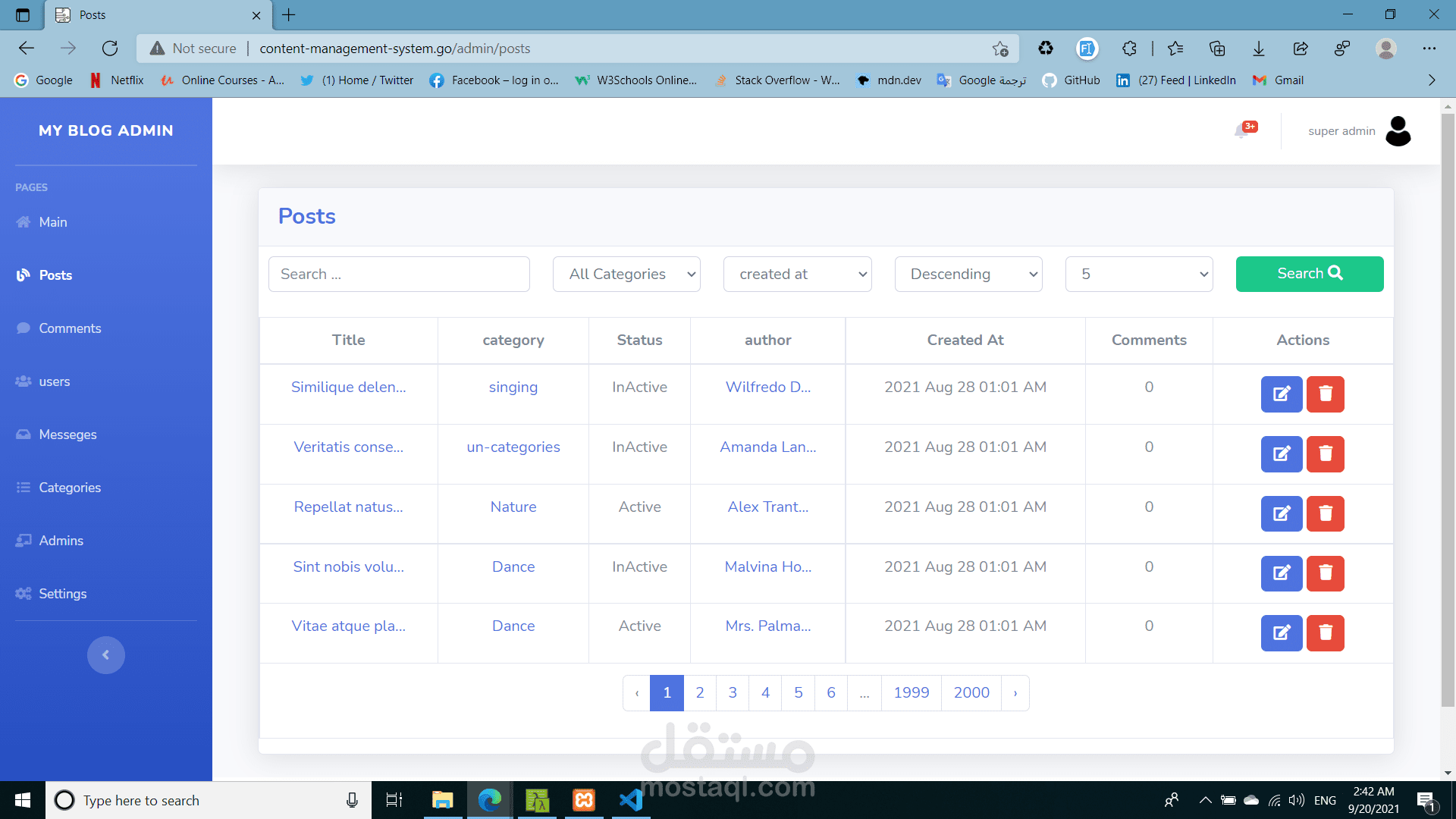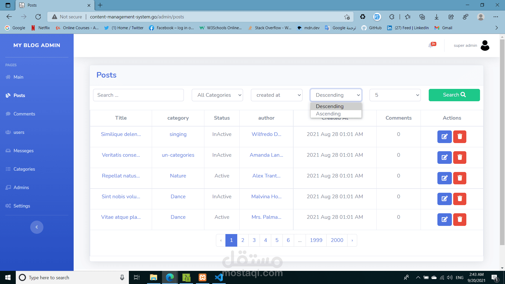 Content Management System (Blog) FULL Project with Dashboard