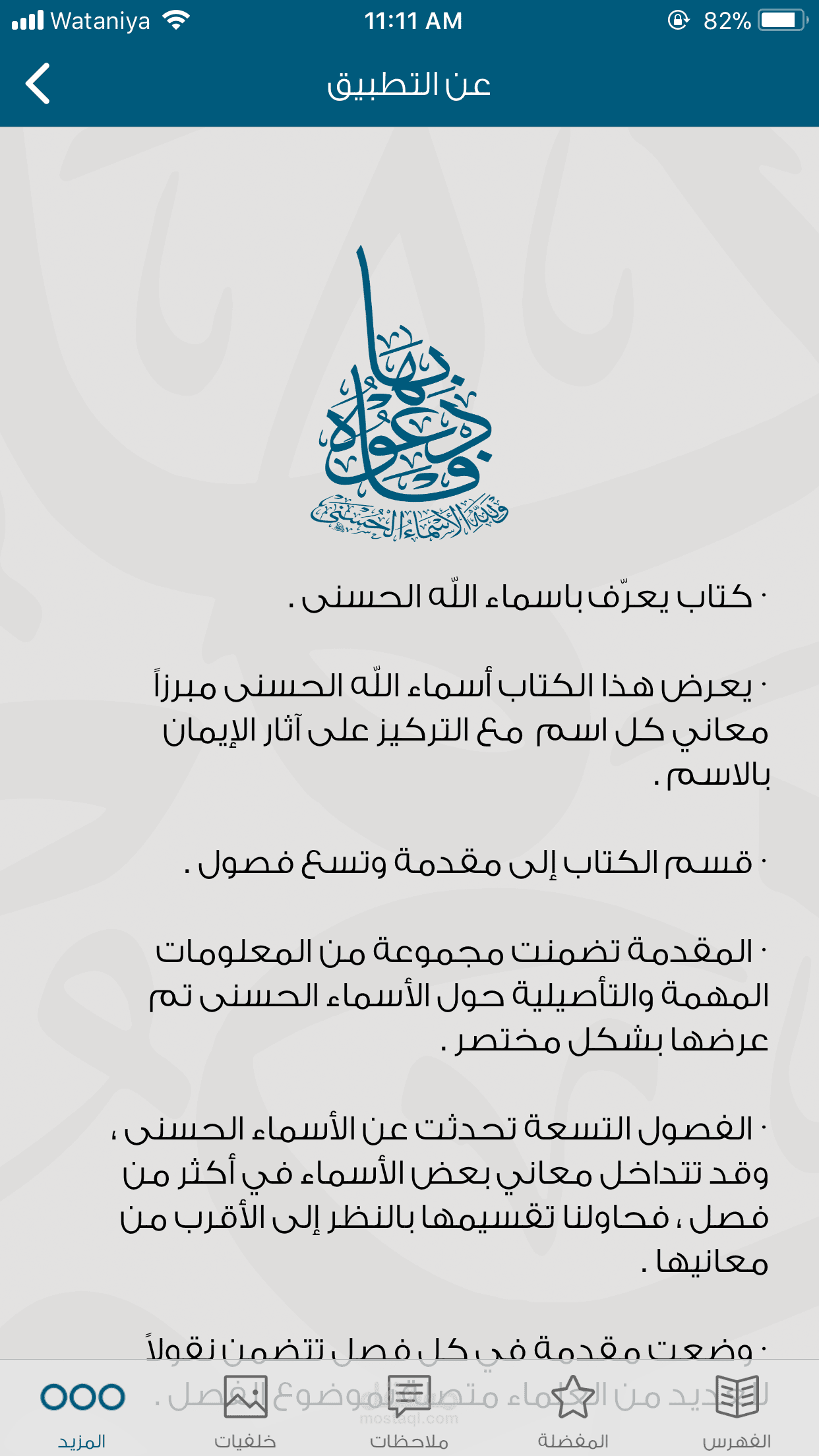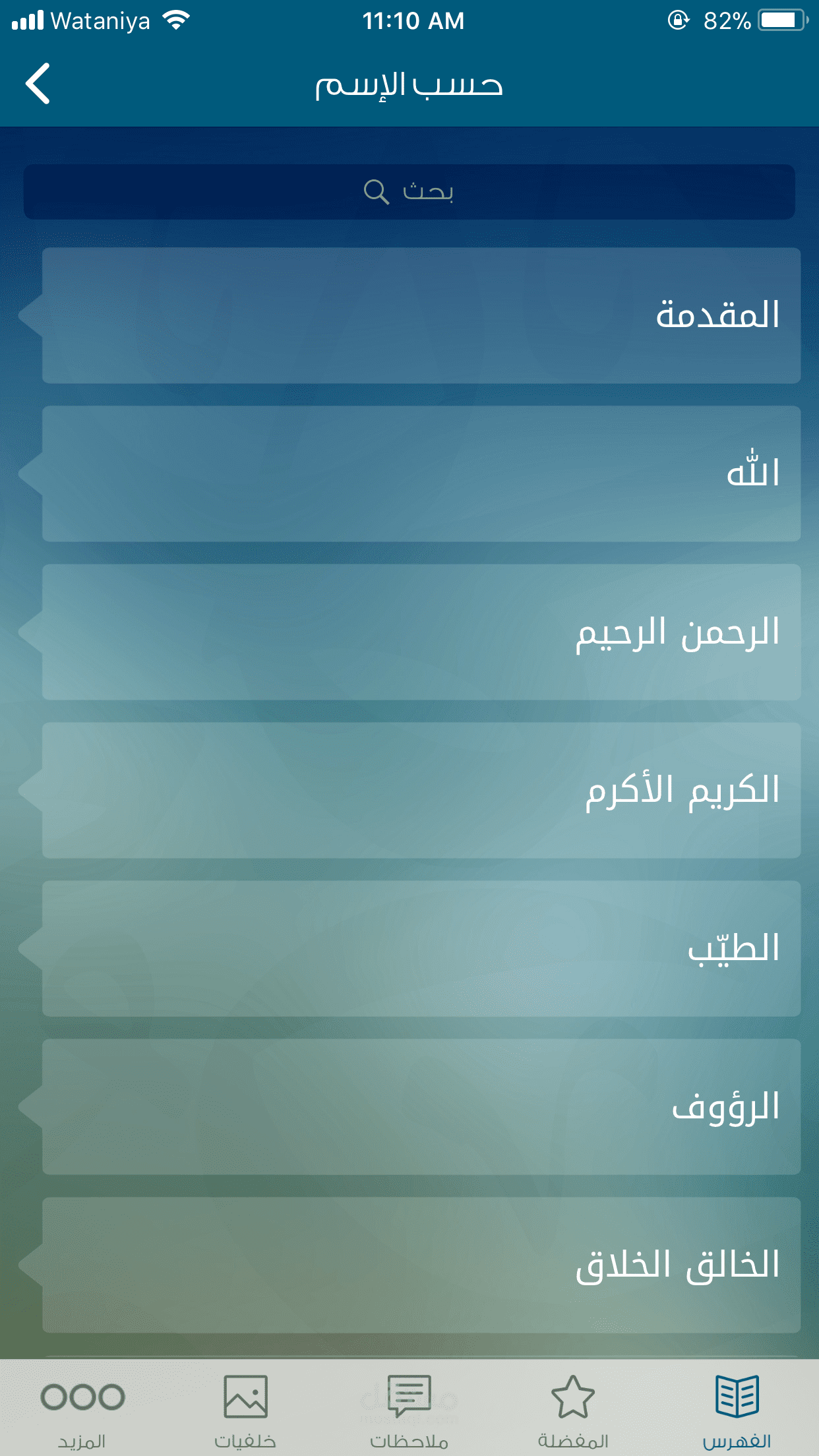 The application for Allah names exhibit in Saudi Arabia, it is to explore the exhibit using mobile application, it is providing the exhibit contents, some backgrounds, Allah names means and more amazing features to communicate with people in or out the exhibit.