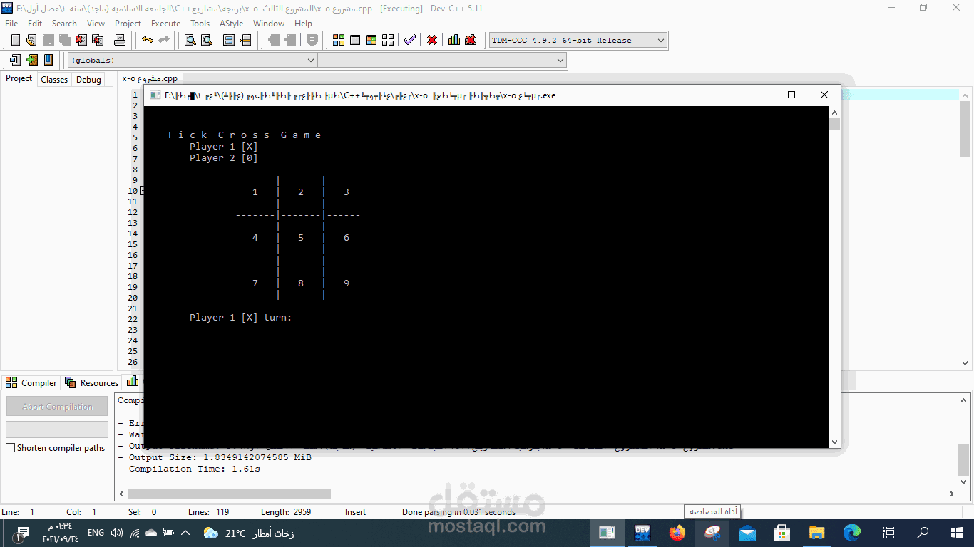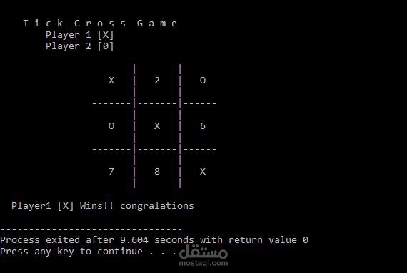 أقدم لكم صور توضيحية عن لعبة X - O حيث تم برمجتها بلغة C++ باستخدام برنامج Dev c ++ .